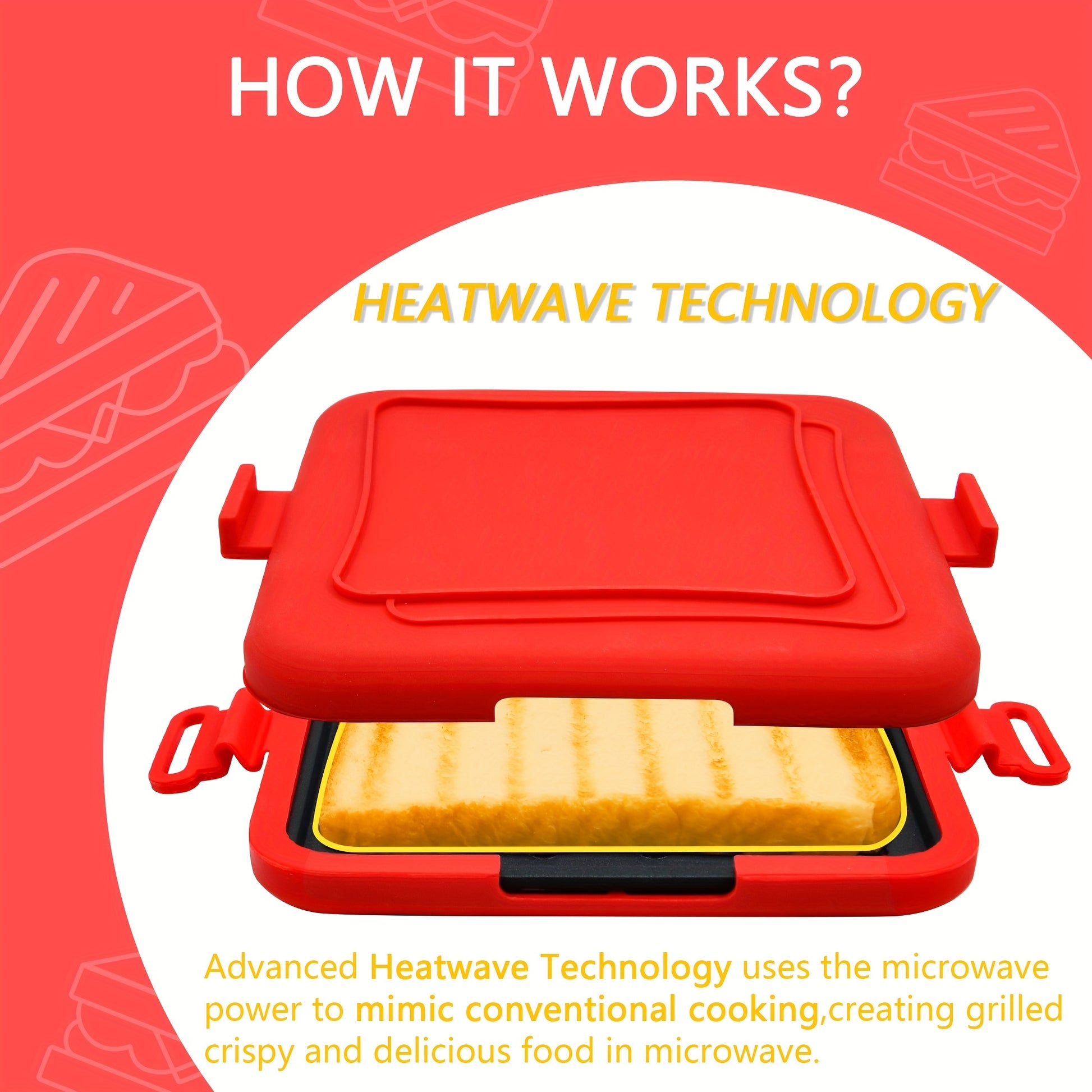 Mikroto'lqinli pechda sendvich tayyorlash panasi - Tez, qizarib pishgan tost uchun pishirish plastinkasi, yopishmaydigan temir, BBQ, kolbasa, tovuq qanotlari, bifshtekslar, qizil rangda, qulay tutqichli.