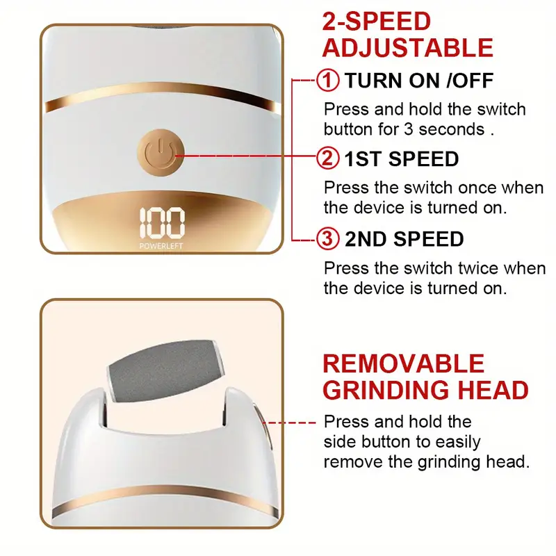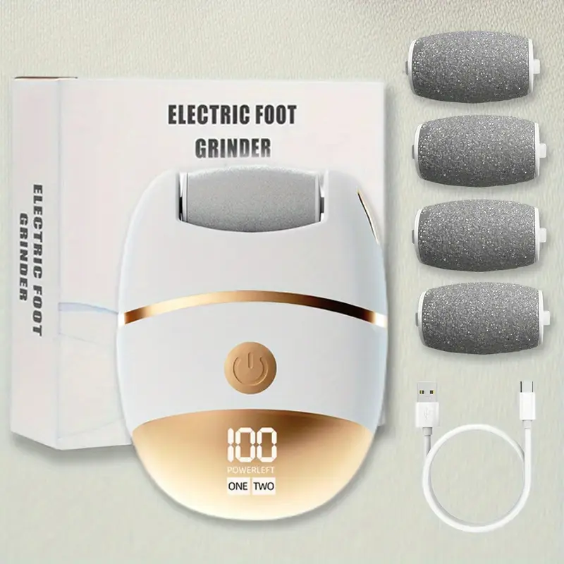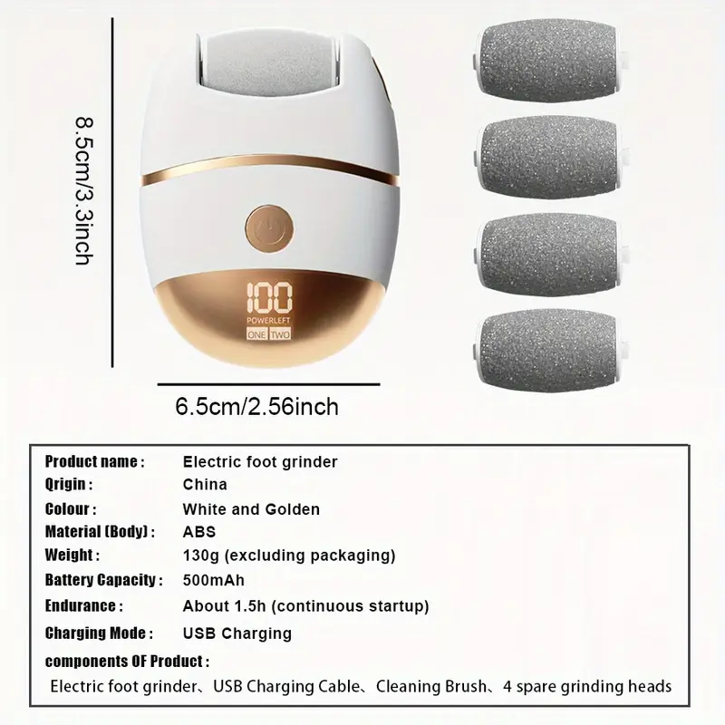 MIGUAN Elektrik Poyabzal Qirg'ich LED Ko'rsatkich bilan - Qattiq va quruq oyoqlar uchun professional teri olib tashlagich, 4 ta zaxira qirg'ich boshli va 500mAh litiy batareyasi bilan. USB orqali zaryadlanadi.
