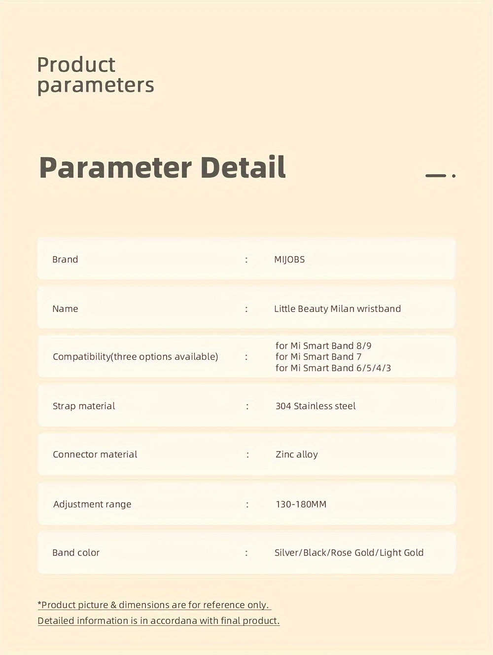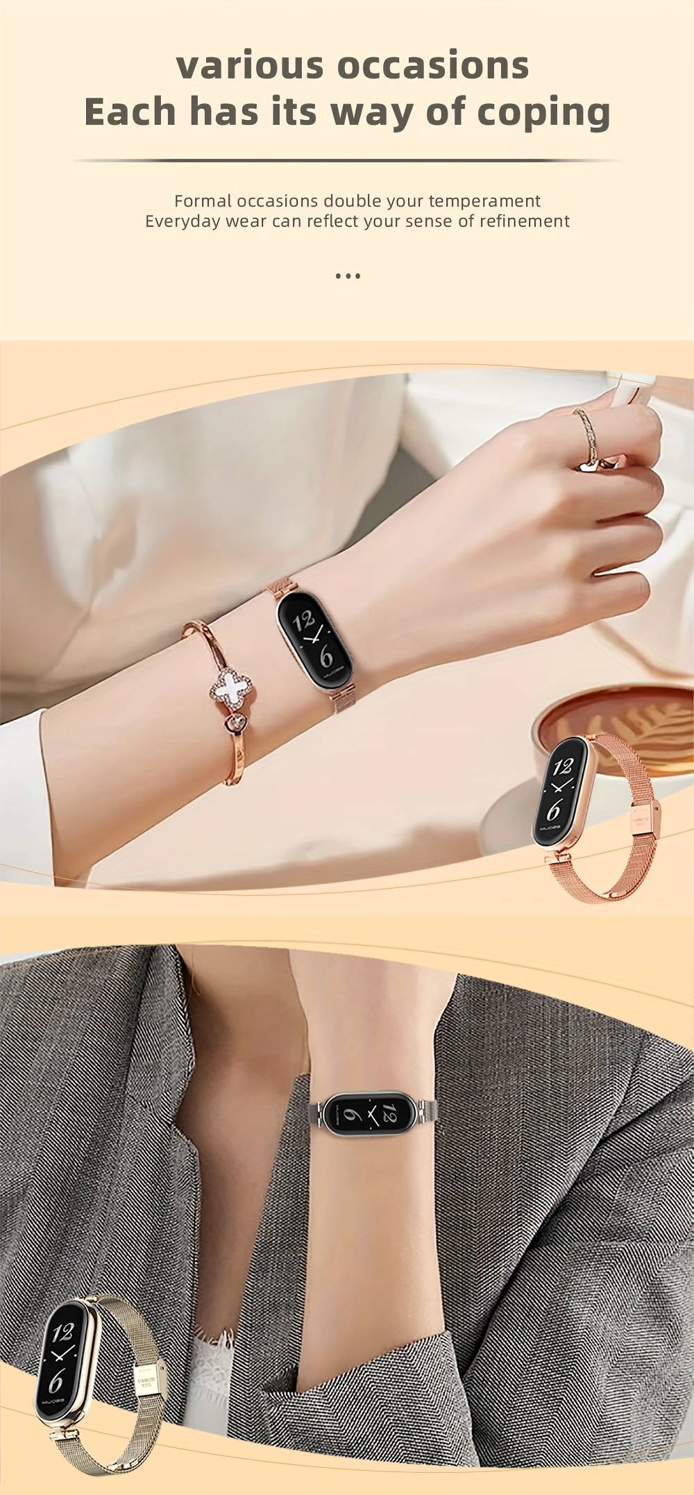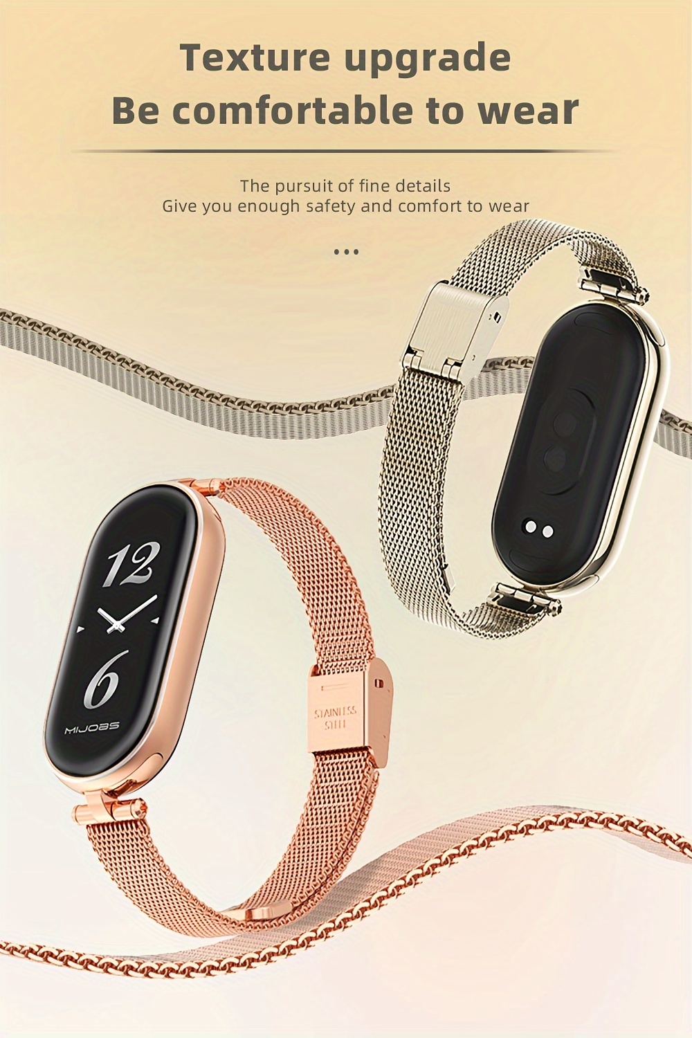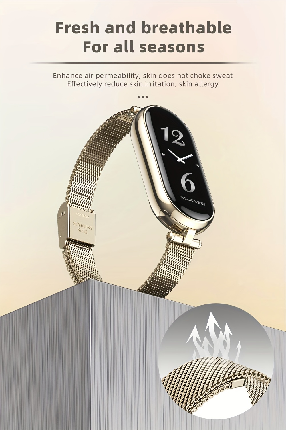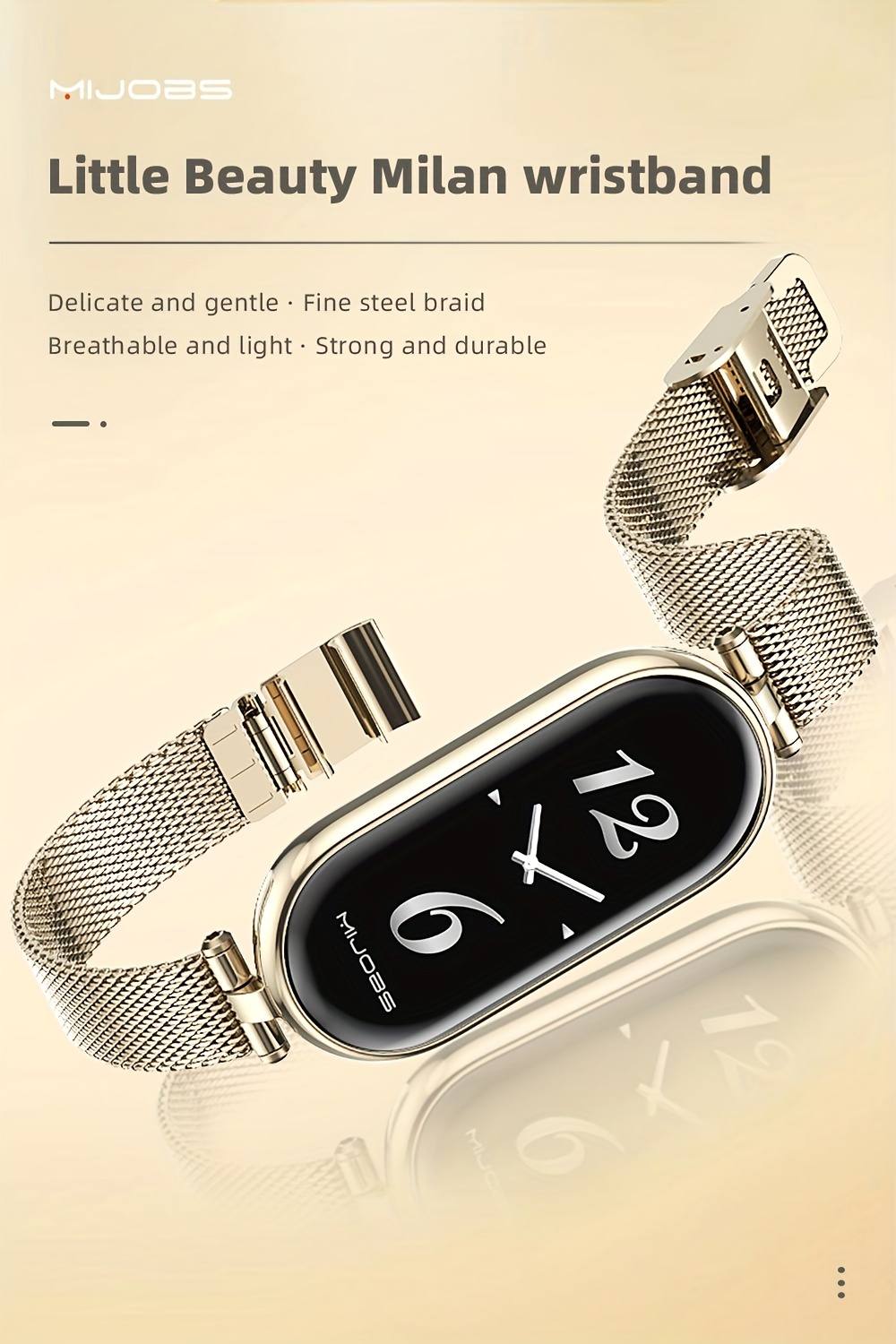 Mijobs Milanese loop zanglamas po'latdan yasalgan tasma Xiaomi Smart Band 8 Global versiyasi uchun, 3-9 tasmalari bilan mos keladi, suvga chidamli emas, flip clasp bucklesi bilan.