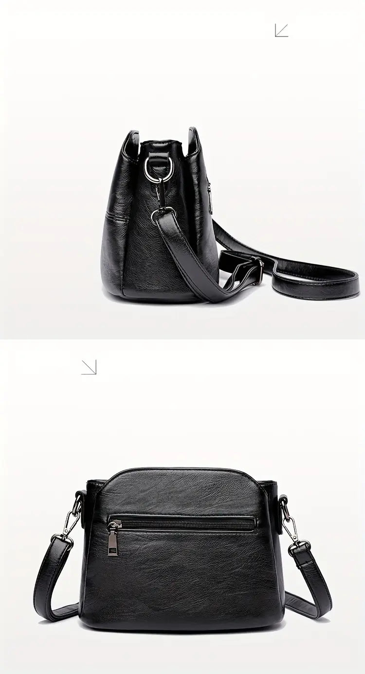 Ayollar uchun sozlanadigan kamar va zip yopilishi bilan qora qoplangan crossbody sumka