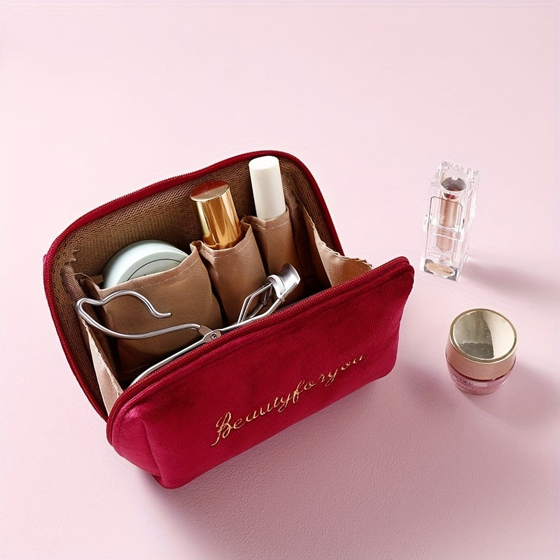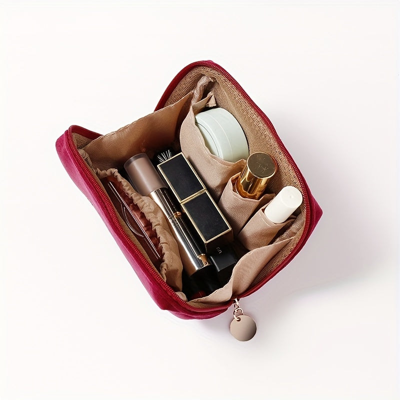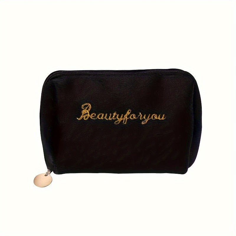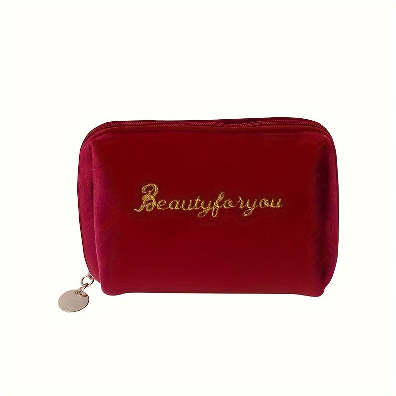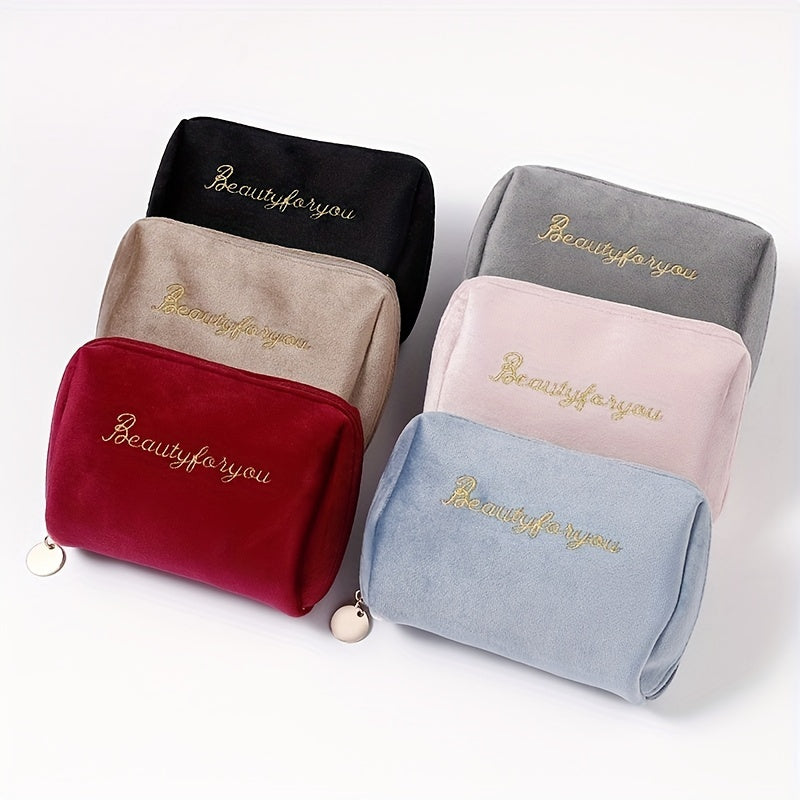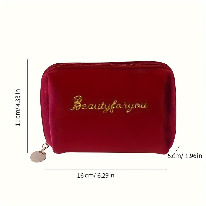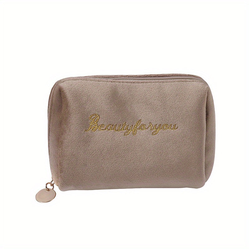 Yumshoq harf tikuvchilik va zip yopilishi bilan mini kosmetik sumka, makiyaj va gigiena buyumlarini ixcham saqlash uchun.
