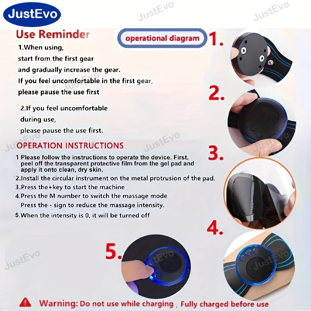 Butun tanaga mo'ljallangan EMS funksiyali Mini EMS massaj yamoq, qayta zaryadlanadigan litiy batareya, USB orqali zaryadlash.