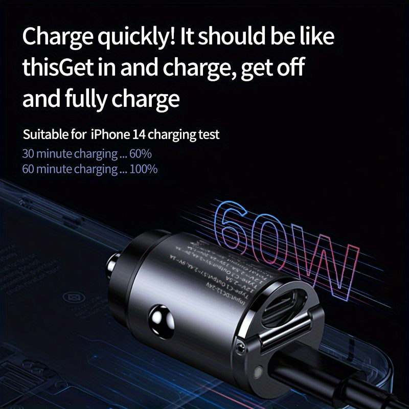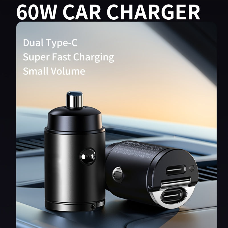 Mini tez zaryadlash avtomobil zaryadkasi, ikki portli Type C PD3.0, portativ mat