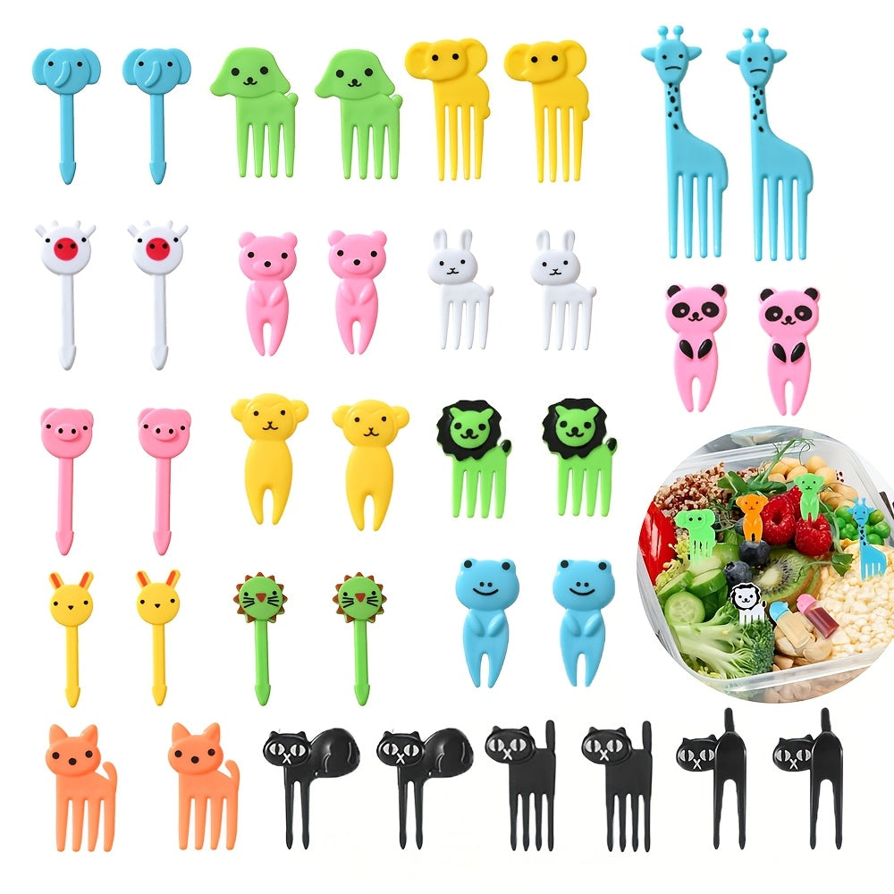 Bolalar uchun 36 ta kichik plastik meva terish Bento qutisi to'plami, chiroyli hayvon multfilmi dizayni bilan