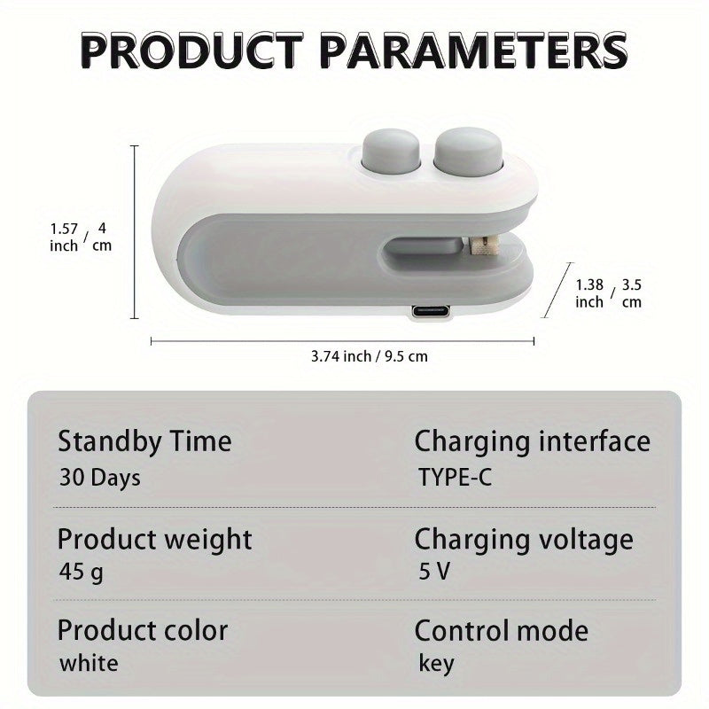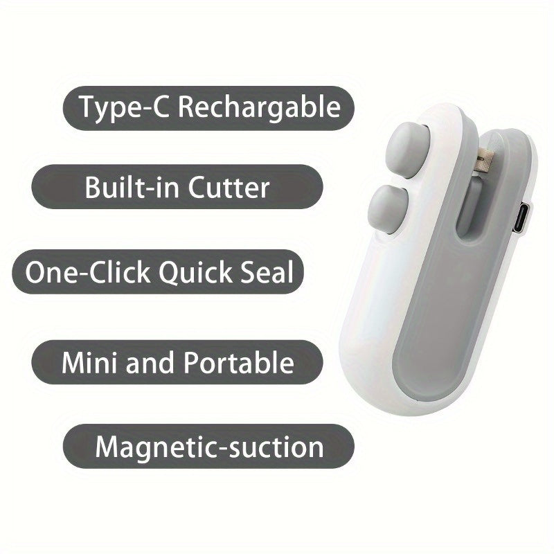 Chip to'sar, ABS issiq vakuum plomba, USB qayta zaryadlanuvchi lityum batareyasi bilan mini gazak sumkasini yopish mashinasi - oziq-ovqat bilan bevosita aloqa qilmasdan oziq-ovqatning yangiligini saqlash uchun 2-in-1 portativ yechim