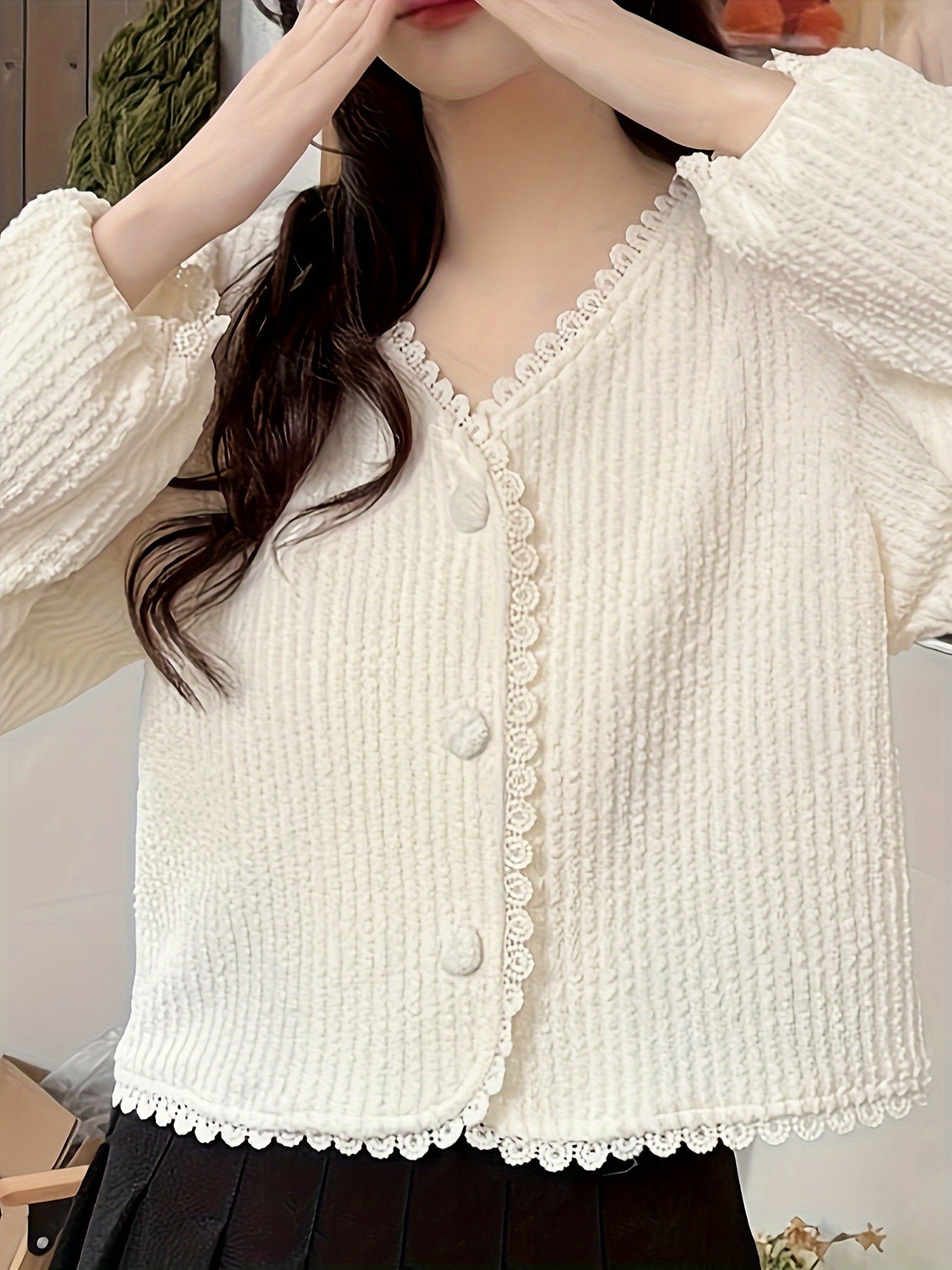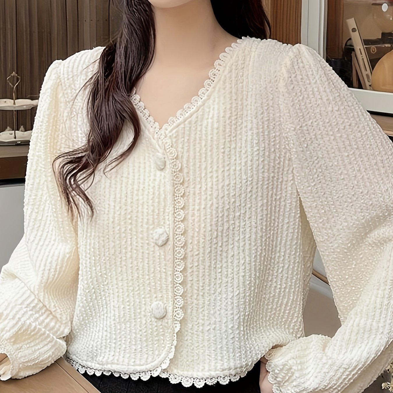 Minimalist Mustaqil Rangli Tugmachali Bluzka, Uzun Yengli Tasodifiy Kiym uchun Ayollar Bahor va Kuzda