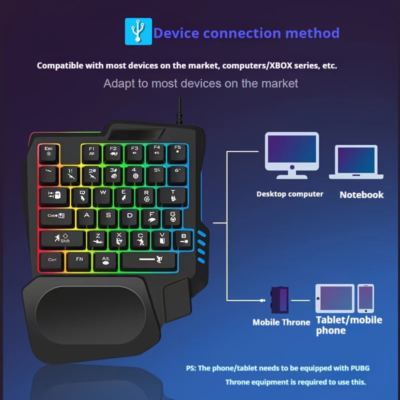 RGB yoritg'isi, ulanishi va mexanik hisi bilan PUBG Mobile va boshqa mobil o'yinlar uchun mobil o'yin klaviaturasi va sichqoncha kombinatsiyasi.