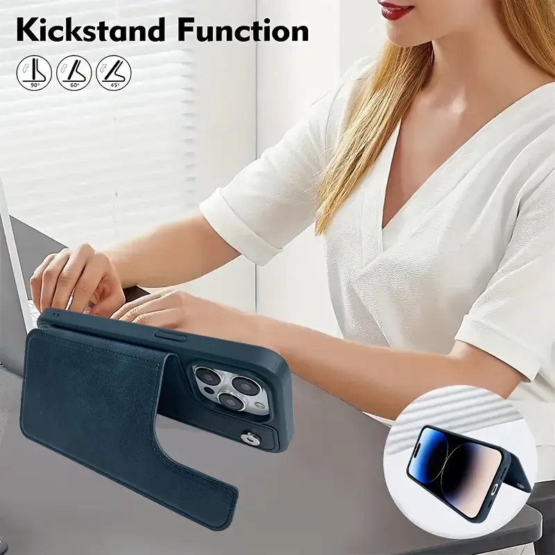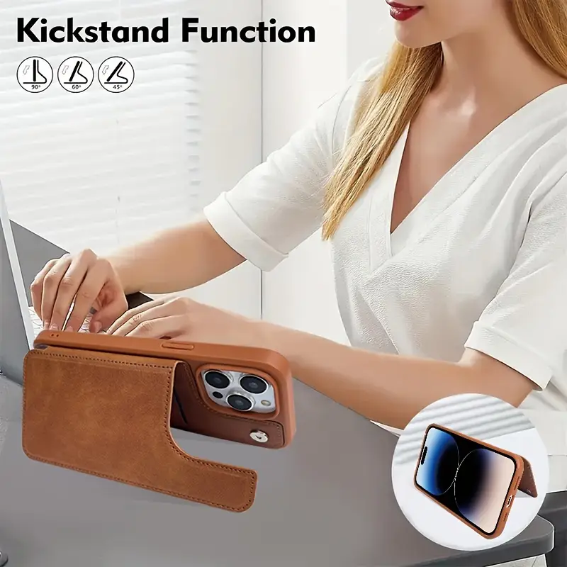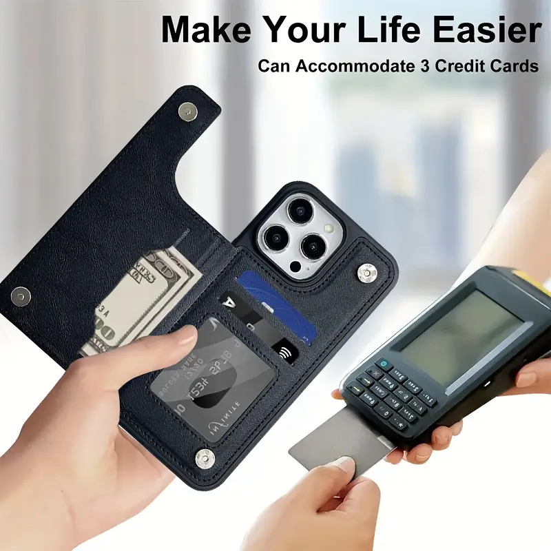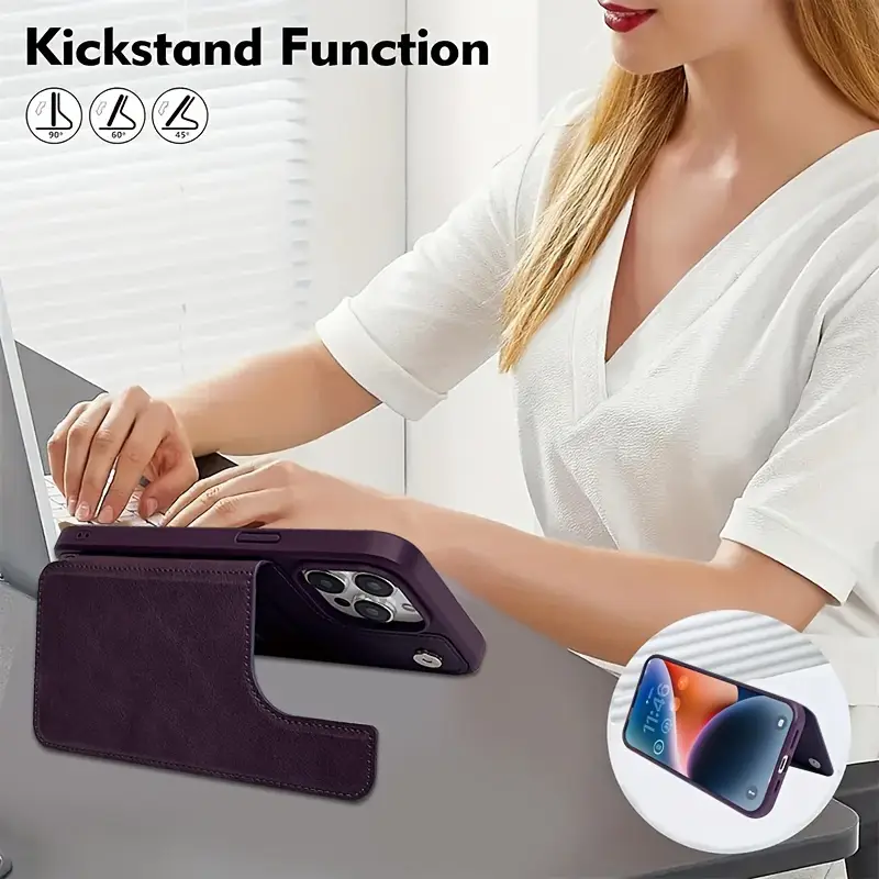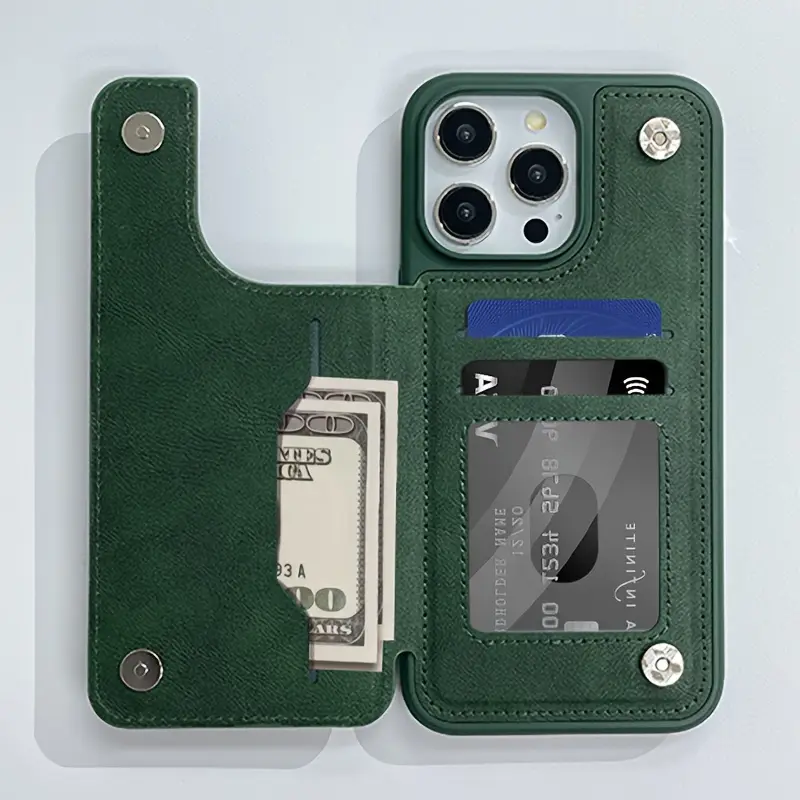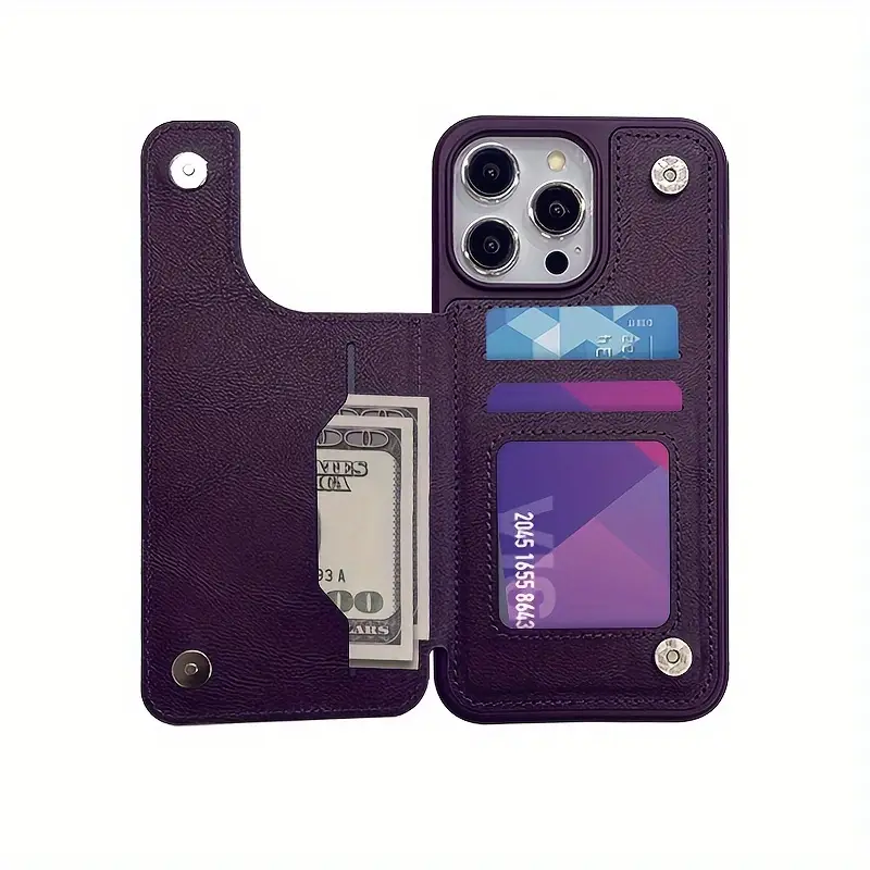 Turli iPhone modellari uchun magnit tugma funksiyasiga ega mobil telefon qopqog'i.