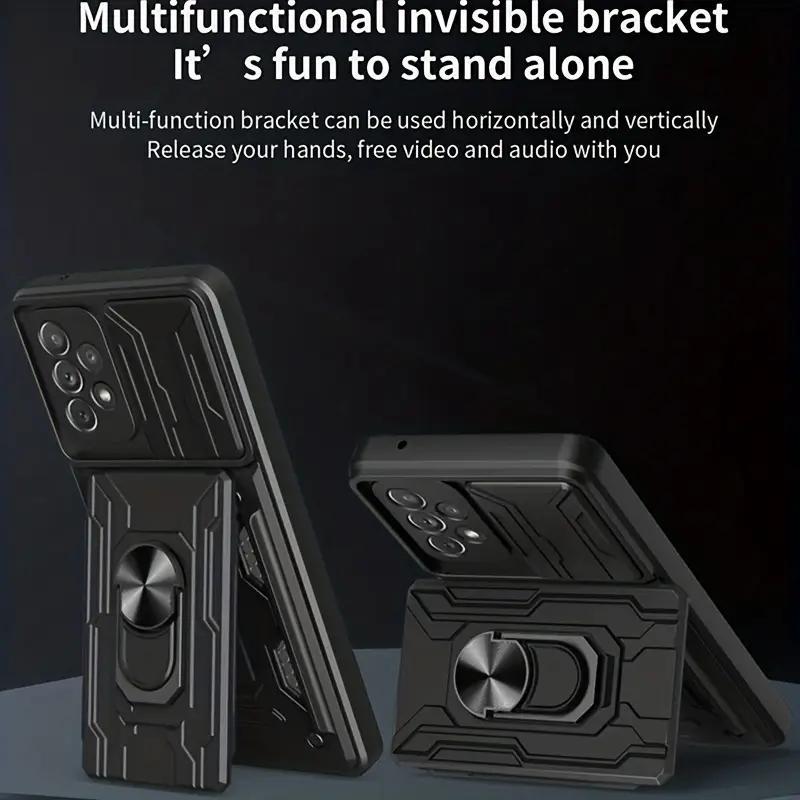 Galaxy S25-S22 Ultra, A14-A55, A71 va A73 uchun slaydli kamera qopqog'i, karta ushlagichli hamyon, 360° magnit halqa ushlagichi va avtomobil magnit so'rish bilan mobil telefon qopqog'i. To'liq kamera taklif etadi.