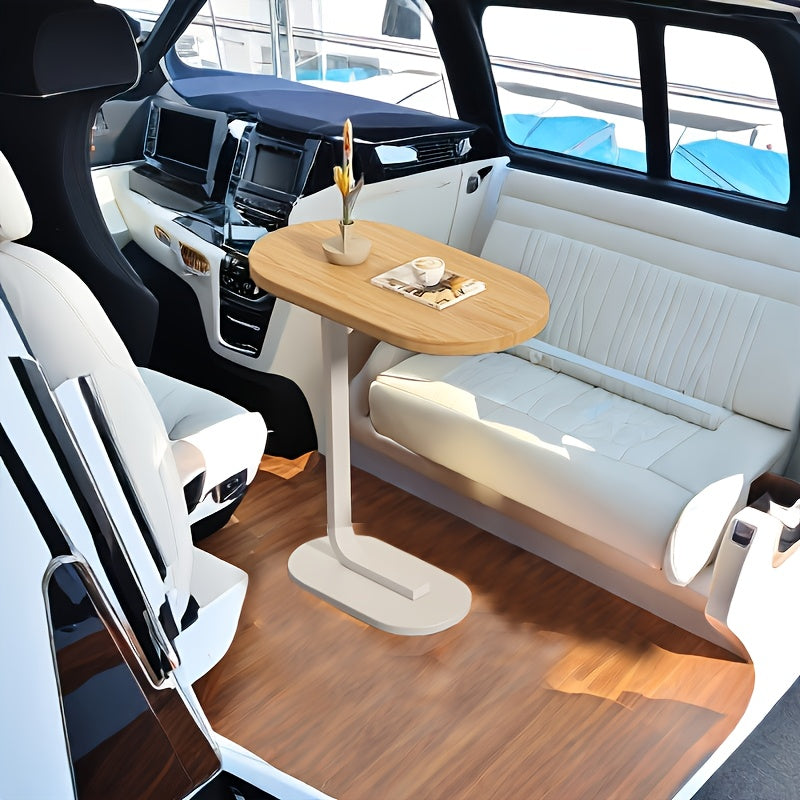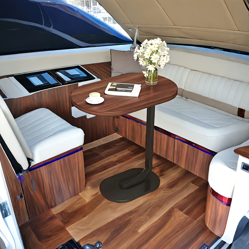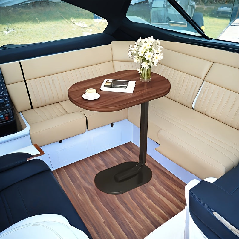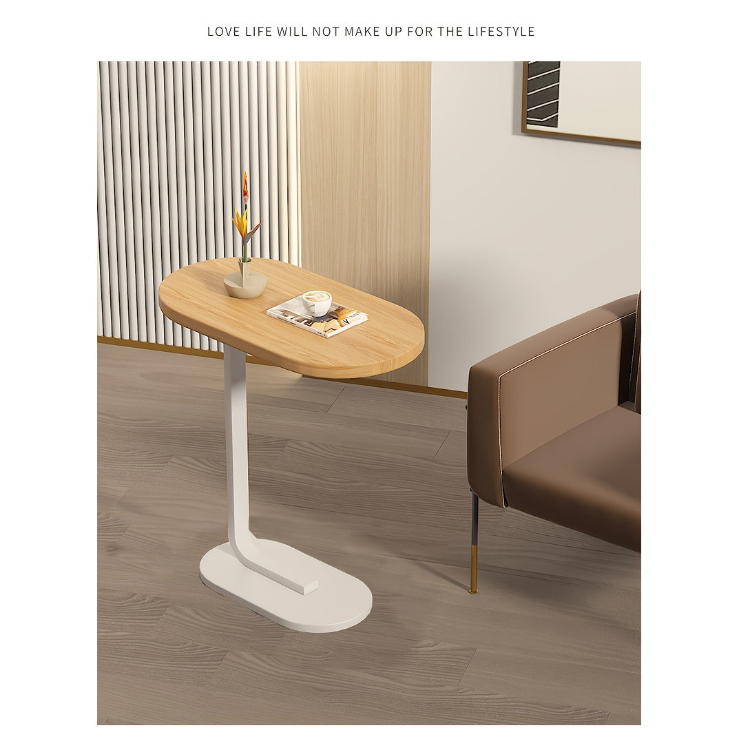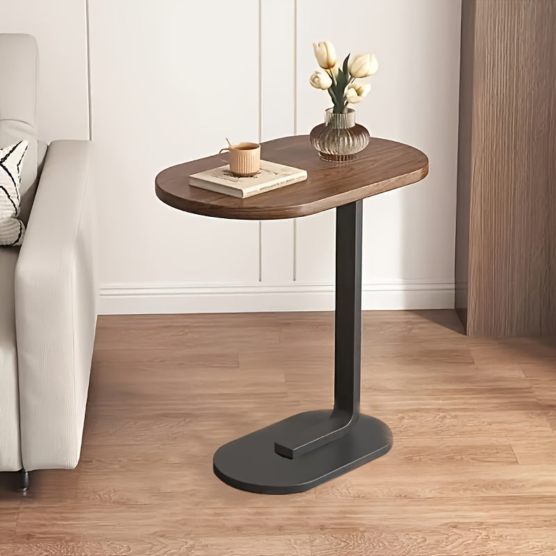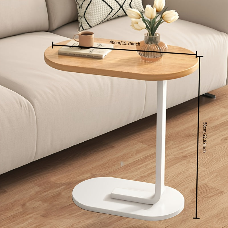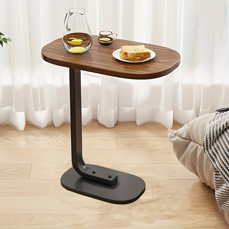 Zaytun yog'ochi va temirdan yasalgan zamonaviy C-shaklidagi divan yon stoli, mustahkam qora ramkaga ega. Turli joylar uchun mos, ixcham va bardoshli dizayn.