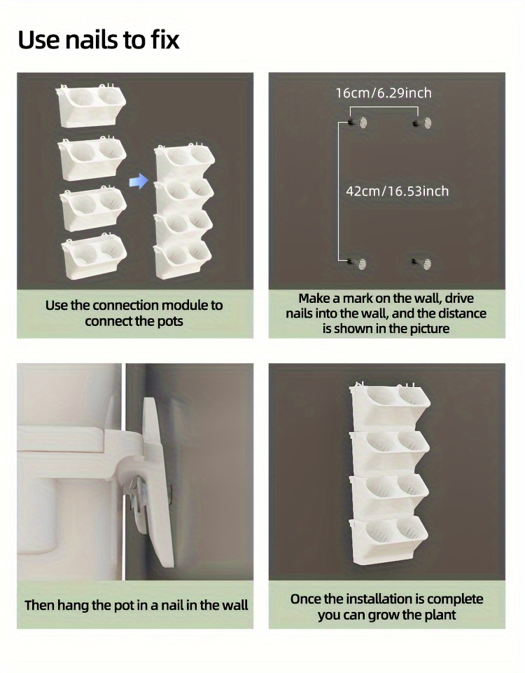 Zamonaviy dekorativ plastik devor osma gullar uchun idish, drenaj teshigi va barcha uy o'simliklari, sukulentlar, gullar va kaktuslar uchun plastinka bilan.