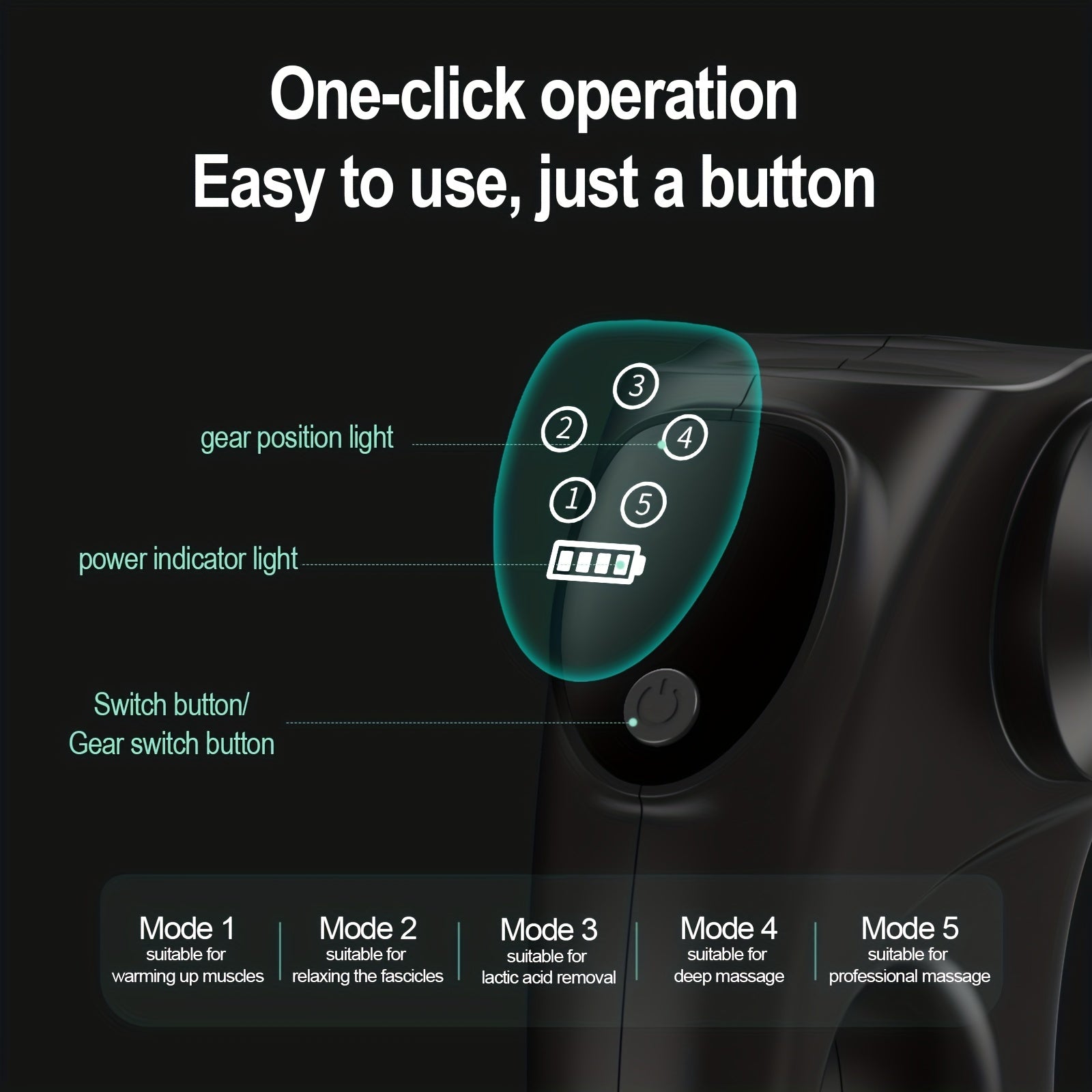 Zamonaviy massaj quroli, 5 ta sozlanadigan tezlik, ikki massaj nozzle, USB orqali zaryadlanadigan, litiy batareyasi bilan ishlaydigan, CE/FCC/RoHS sertifikatlangan, mustahkam konstruktsiya.