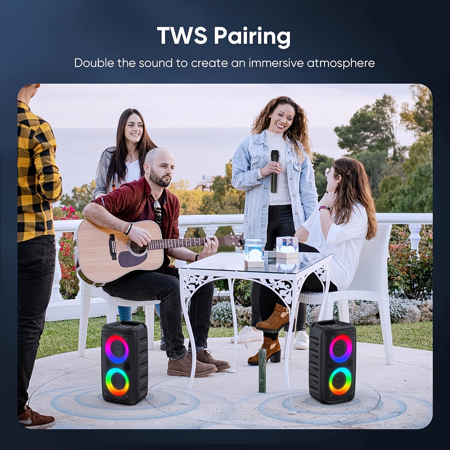 MOKiN Portativ Simsiz Dinamik Subvufr bilan, Mikrofon, Ikki 10W Dinamik, RGB Partiya Chiroqlari, FM Radio, 2400mAh Batareya, TWS Juftlashuvi, TF Kartasi Slot - Uy va Tashqi Tadbirlar Uchun Ideal