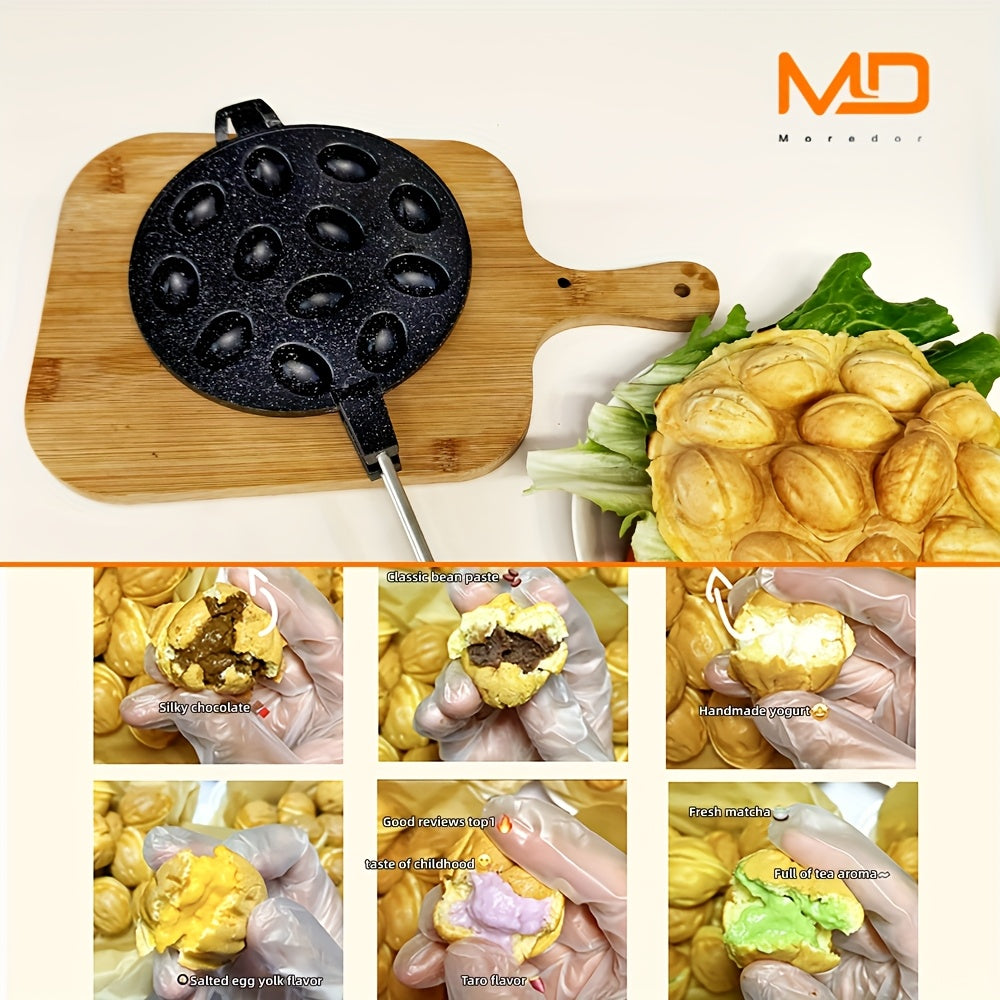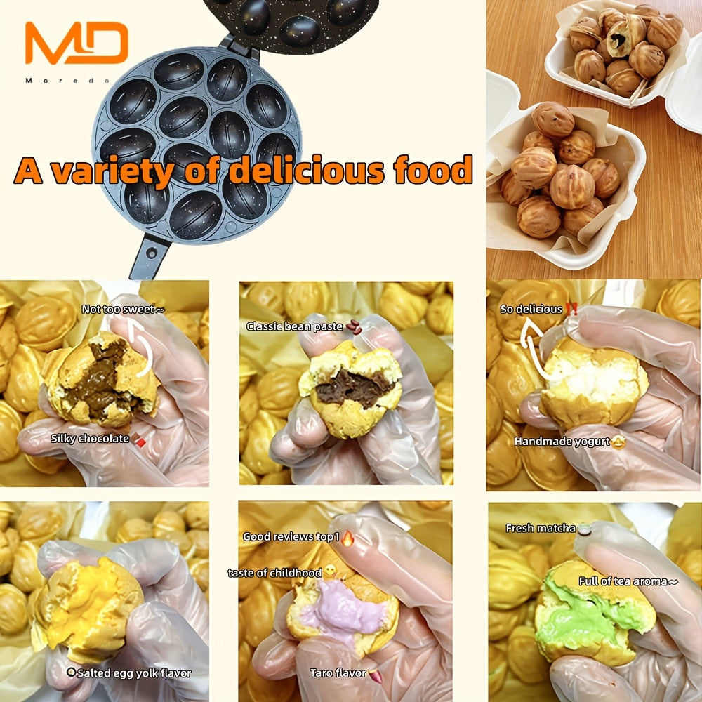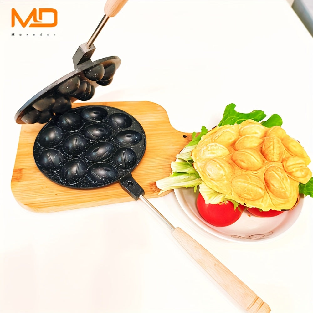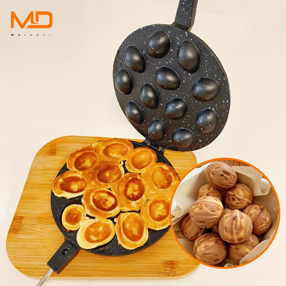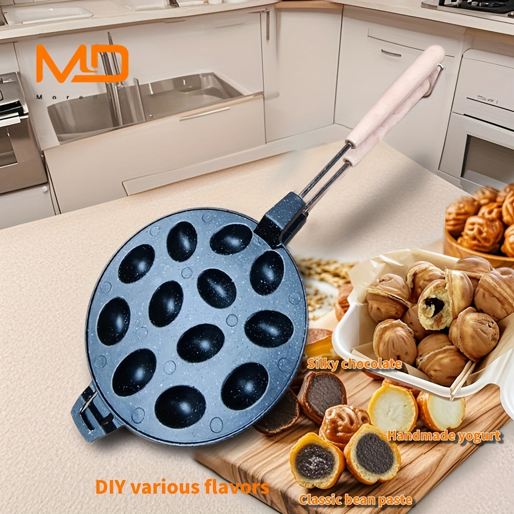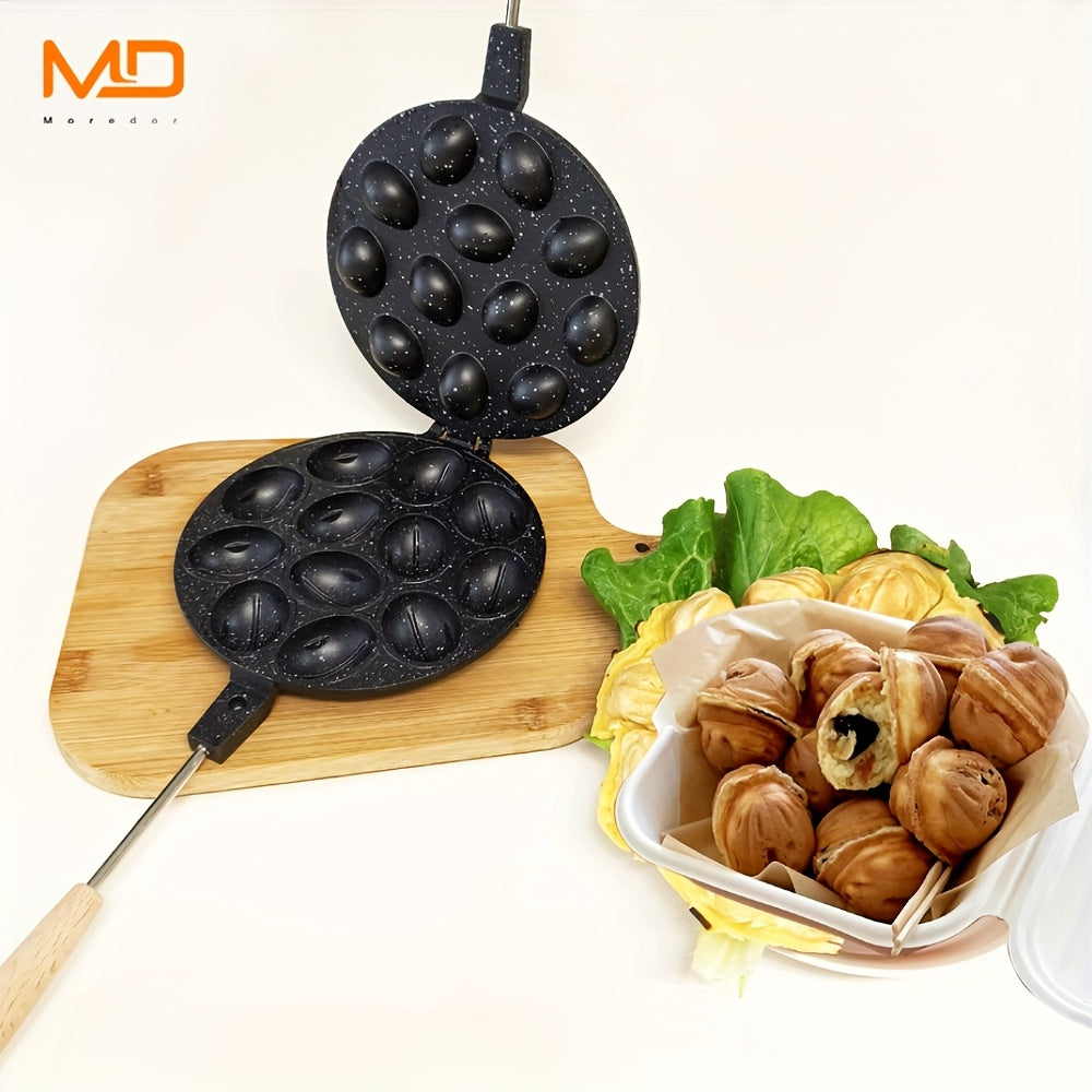 Gaz plitalari uchun 12 teshikli alyuminiy vafli tayyorlagich, elektrsiz, oson tozalash, yong‘oq shaklidagi keklar, pichoq shaklidagi qoliplar