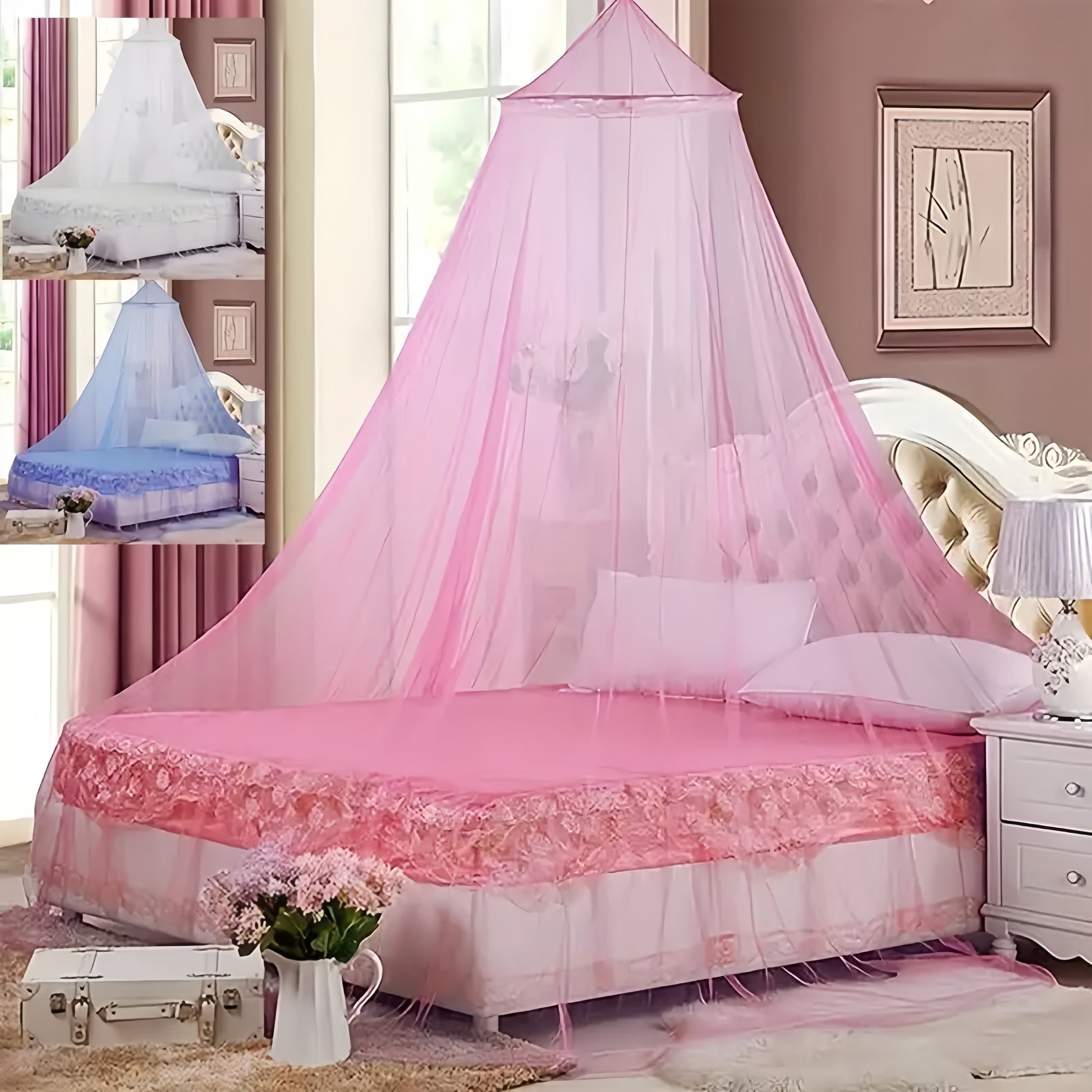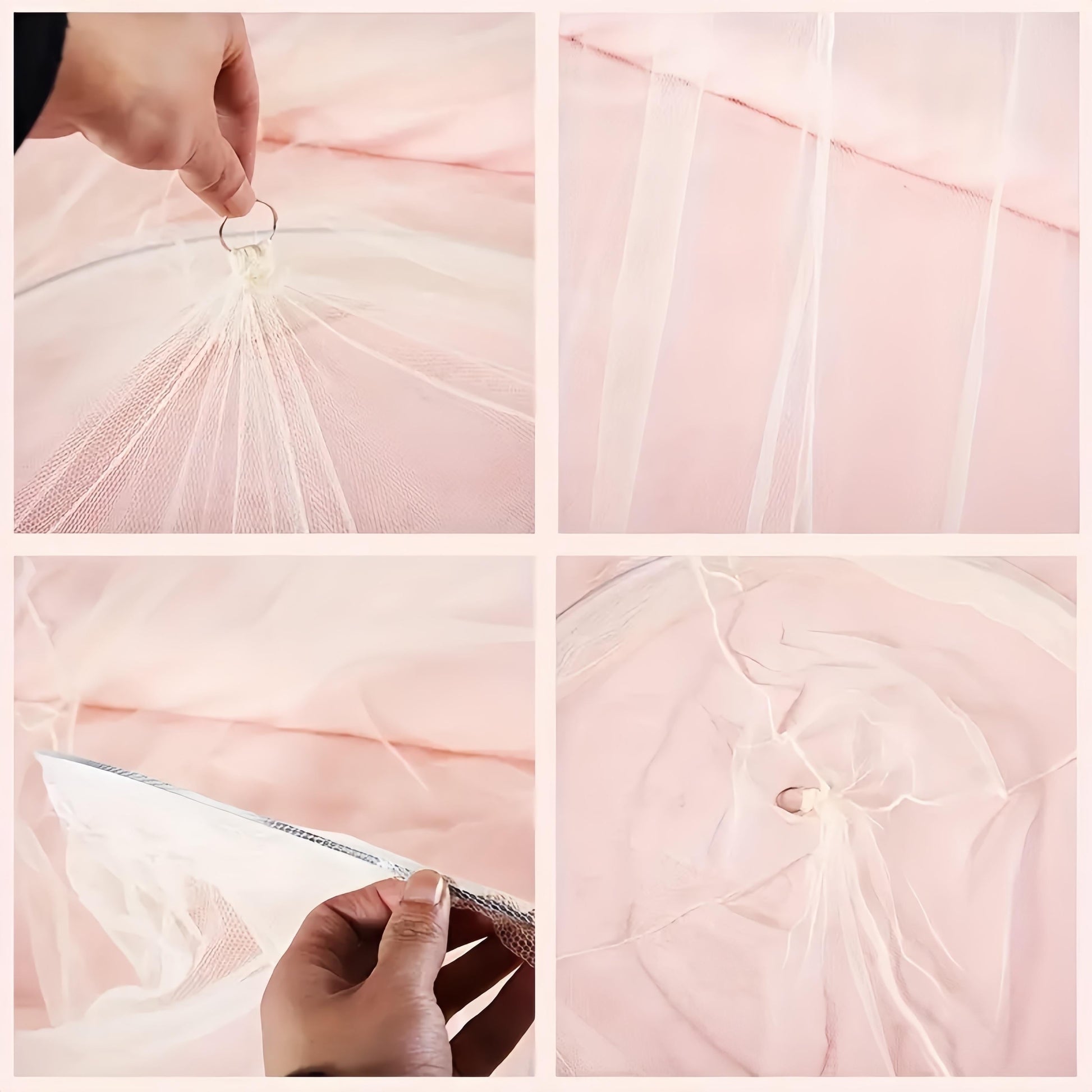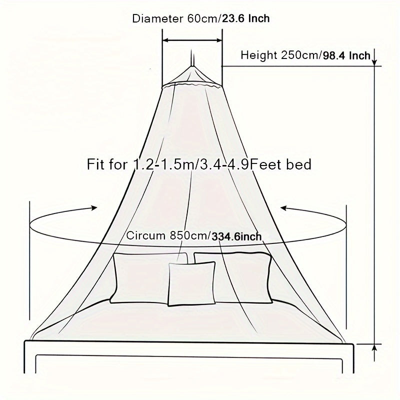 "Dumaloq dome dizayniga ega komar to'sig'i, 100% polyesterdan tayyorlangan, oson o'rnatish uchun temir simli tutqich va qo'l bilan yuvish mumkin bo'lgan to'qilgan yostiq - 1.2-1.5m o'lchamdagi yotoqlar uchun mos, elektr energiyasini talab qilmaydi."