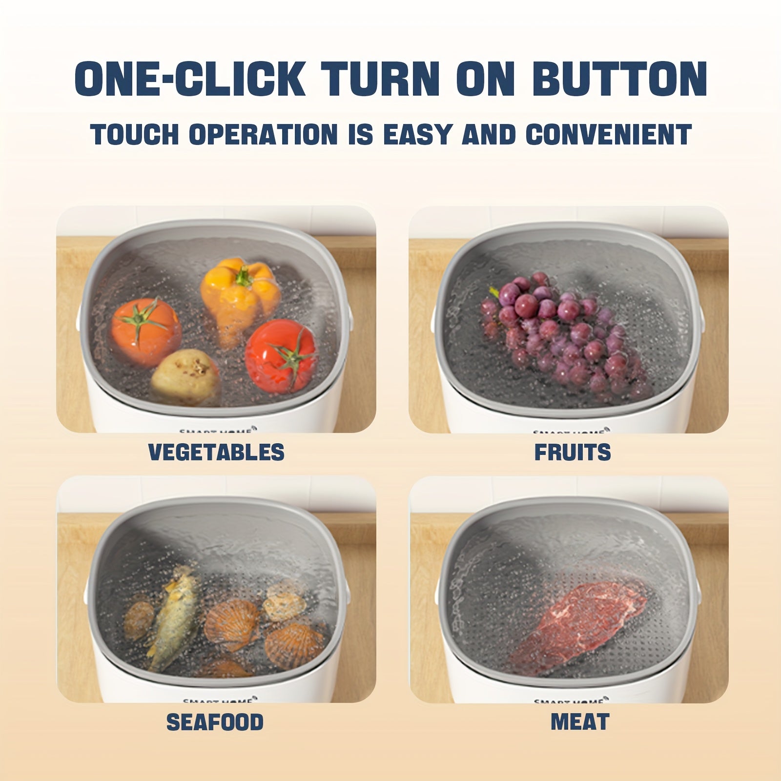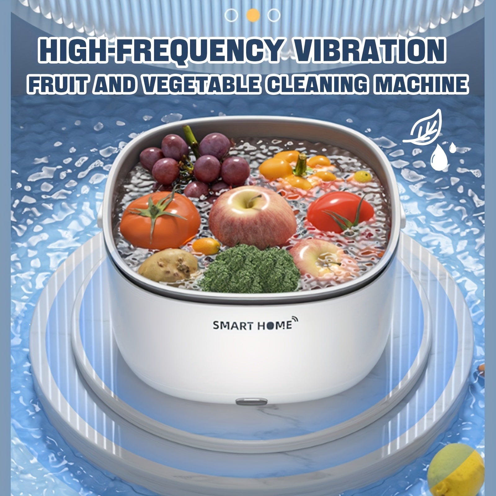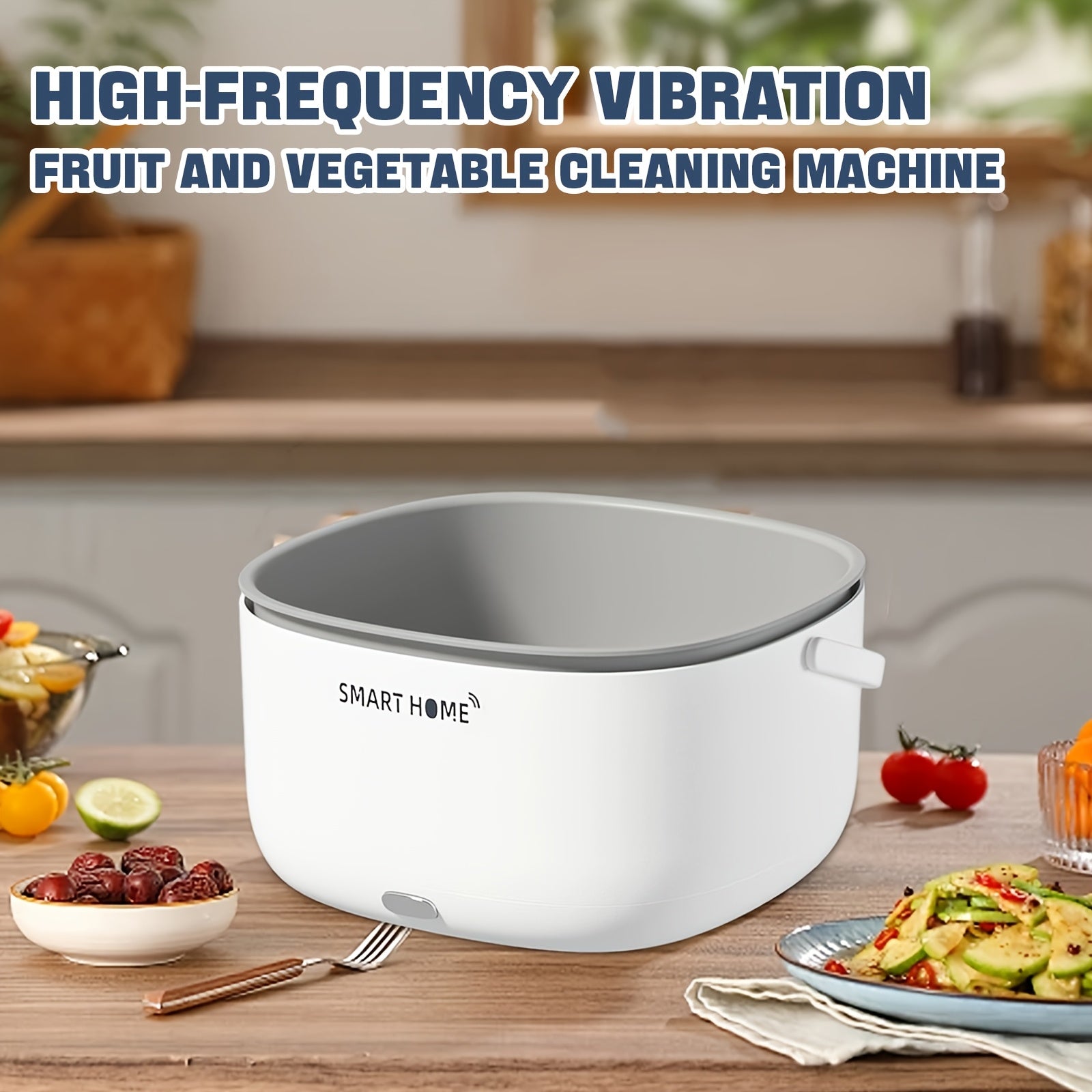 Ovoz to'lqin texnologiyasi bilan multi-funksional oshxona qurilmasi meva va sabzavotlarni tez va samarali tarzda tozalaydi. Oq rangda batareyali, aqlli uy dizayni va gradient drenaj bilan.