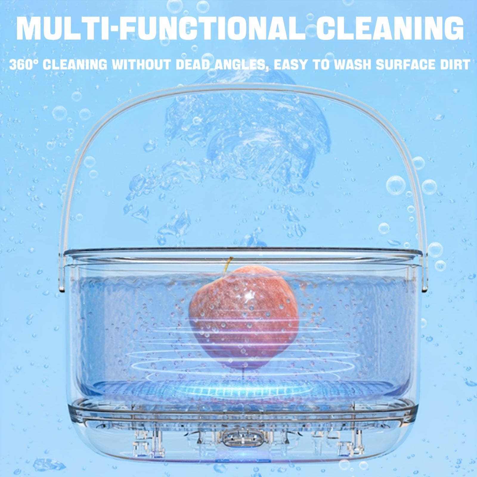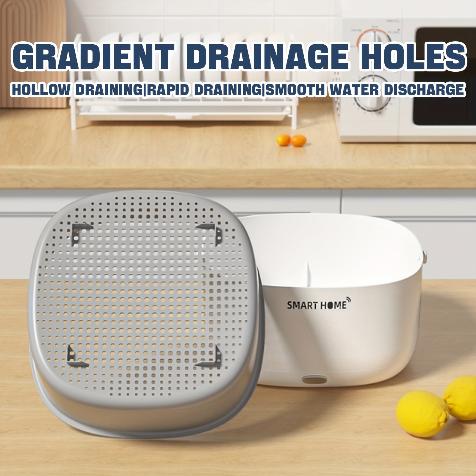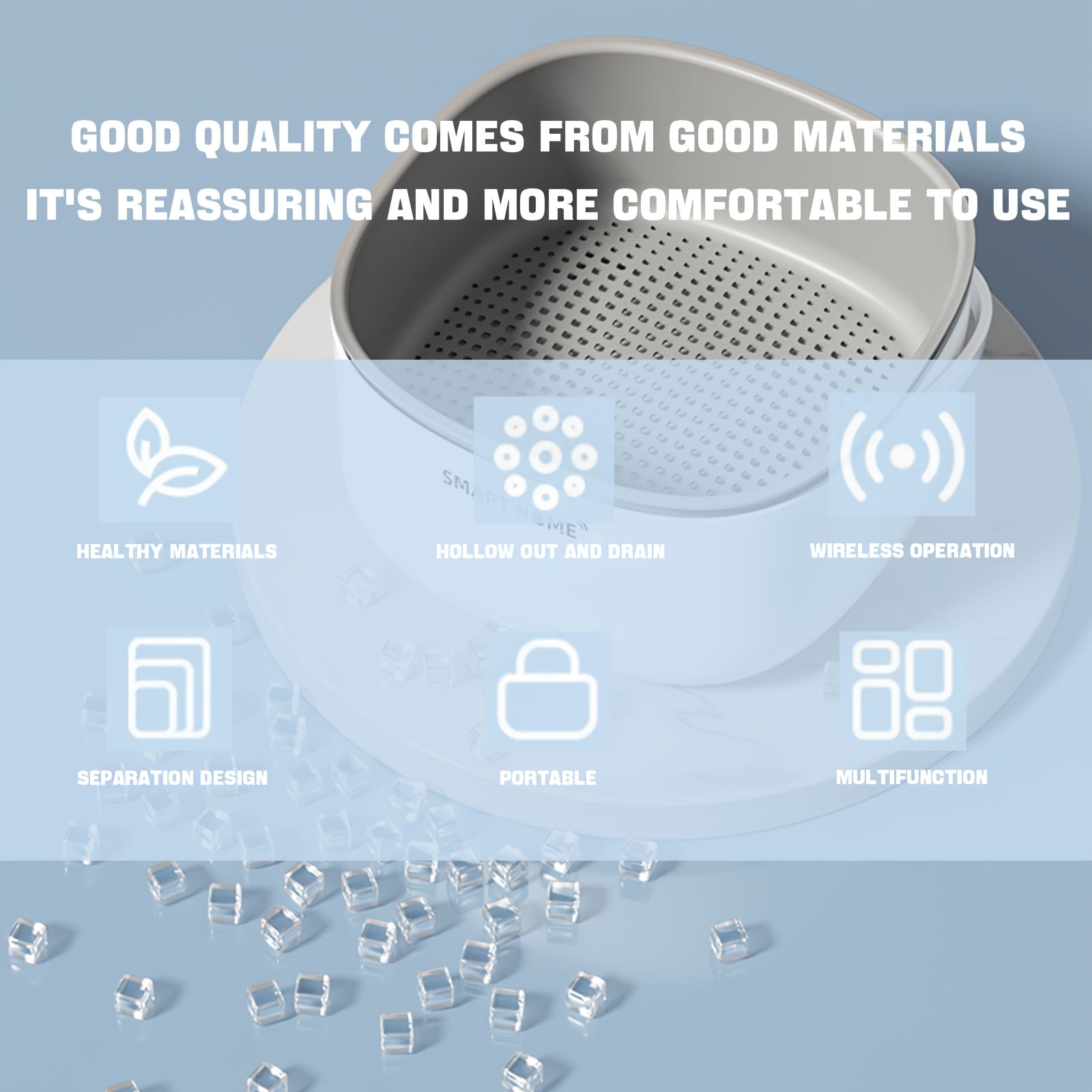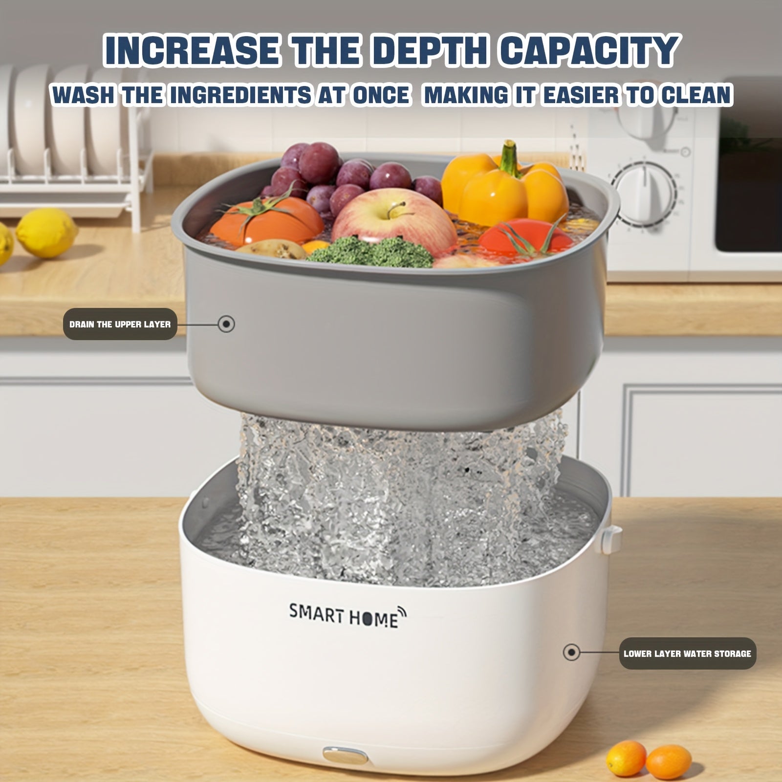 Ovoz to'lqin texnologiyasi bilan multi-funksional oshxona qurilmasi meva va sabzavotlarni tez va samarali tarzda tozalaydi. Oq rangda batareyali, aqlli uy dizayni va gradient drenaj bilan.