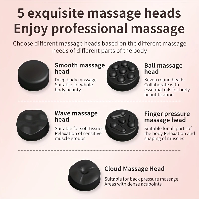 Besh massaj boshli va olti tezlik sozlamalari bilan ko'p funksiyali tebranuvchi massaj mashinasi, tanani bo'shatuvchi, uyda to'liq tanani massaj qilish uchun yoki sovg'a sifatida ideal.