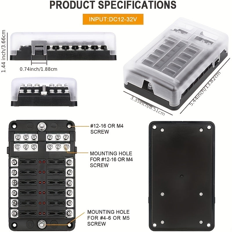Ko‘p yo‘nalishli avtomobil, qayiqlar uchun fuzе qutisi blok tutgichlari LED indikatorlari bilan 12V 32V