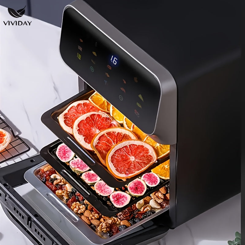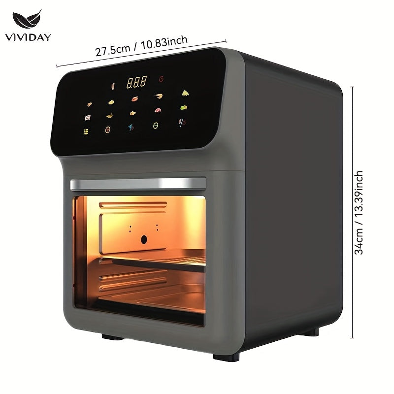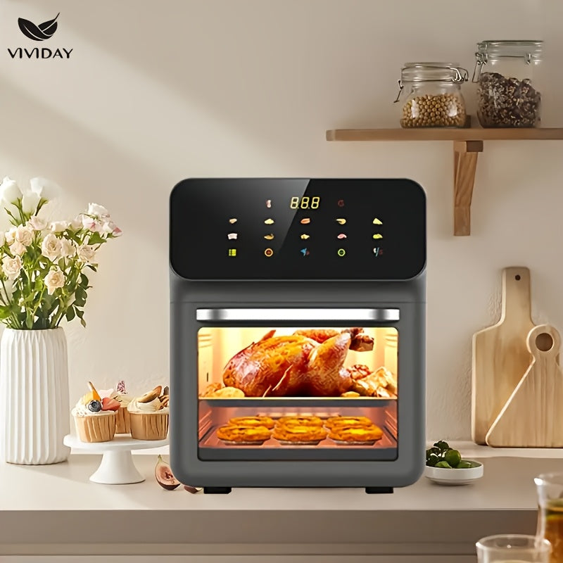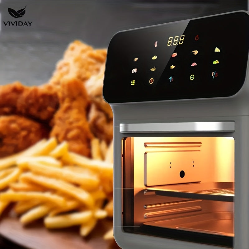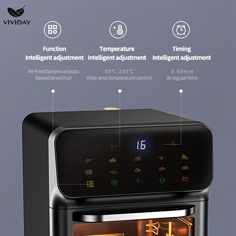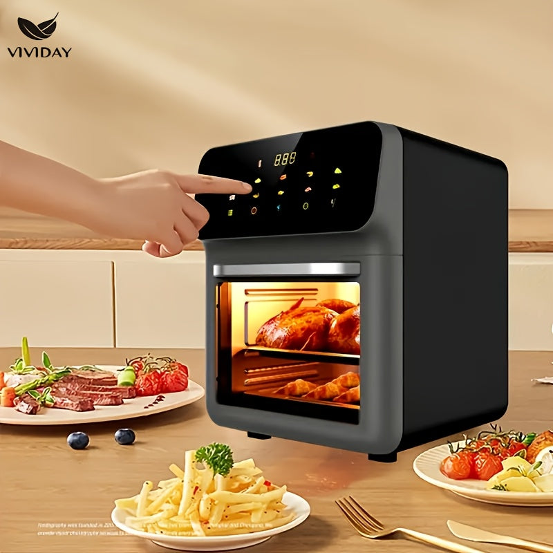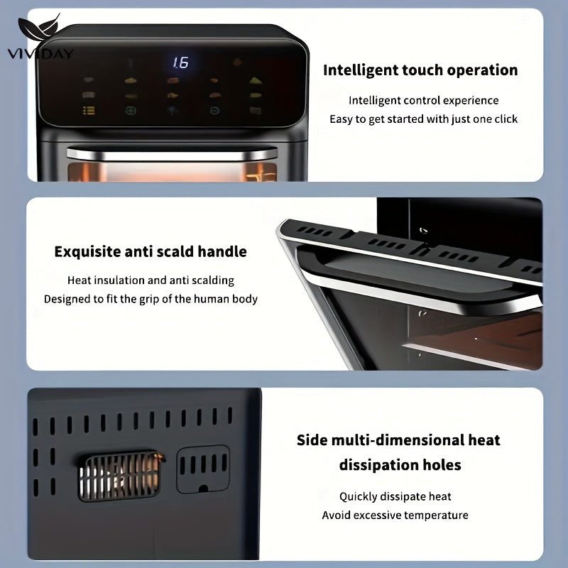 Raqamli sensorli ekran va vizual oynaga ega ko‘p funksiyali havo qovurgich, kichik oshxonalarda pishirish, shashlik qilish, qayta isitish va yog‘siz qovurish uchun ideal.