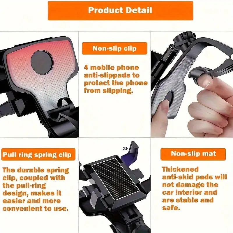 Ko‘p funksiyali avtomobil telefon uchun tutqich, 3-17.78cm smartfonlar uchun mos, sozlanadigan klamp