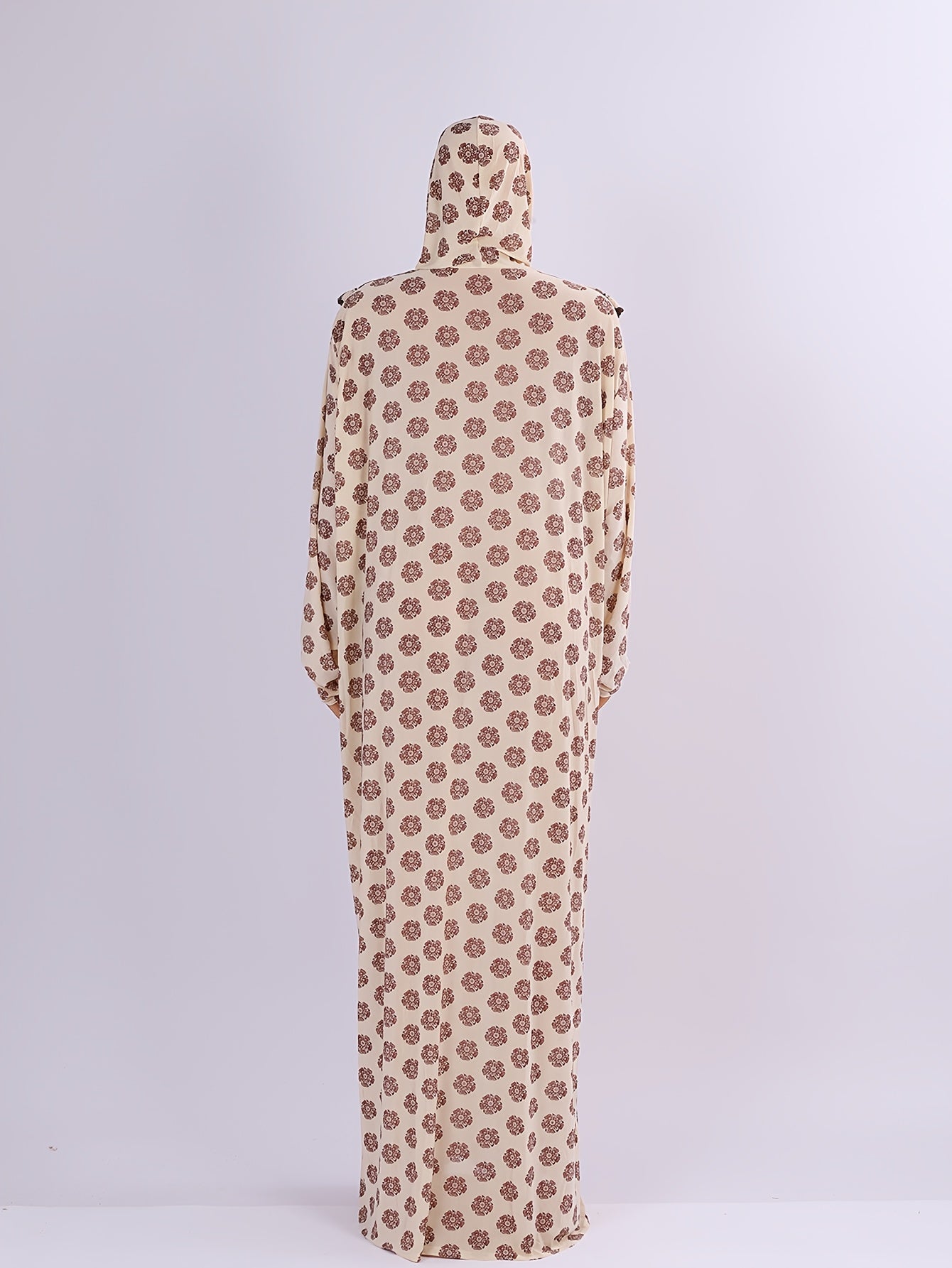 Muslim Abaya Long Sleeve Beige Floral Ruffle Neck Loose Fit All-Season