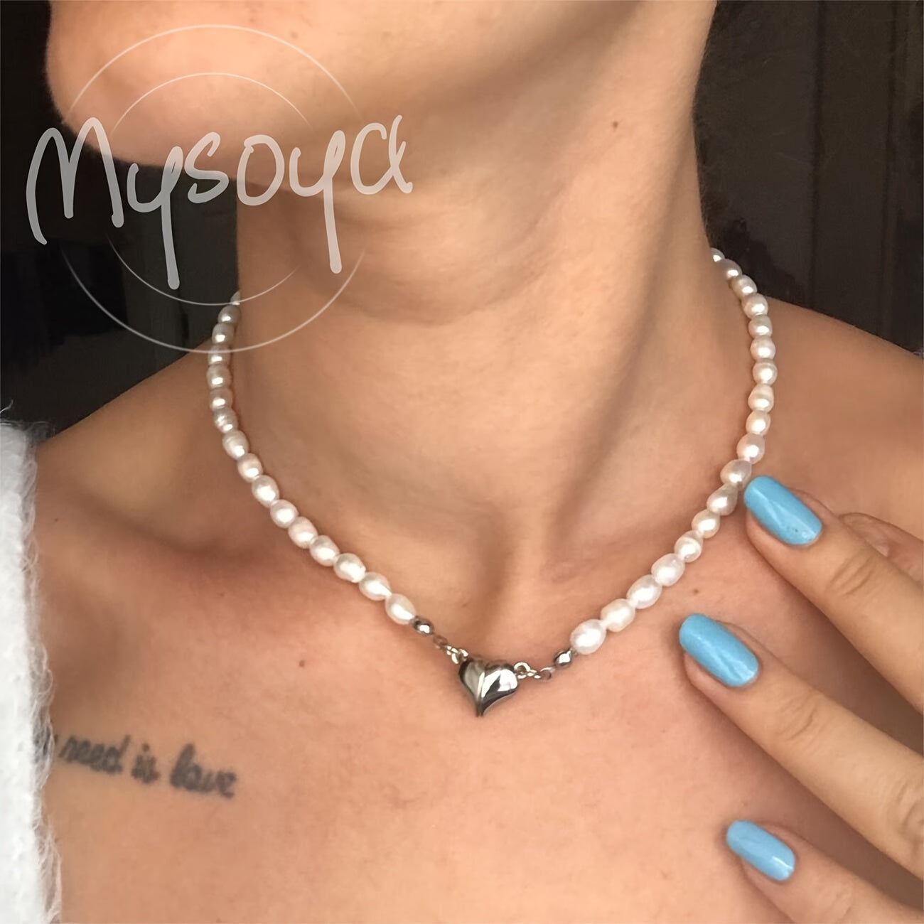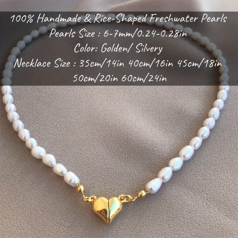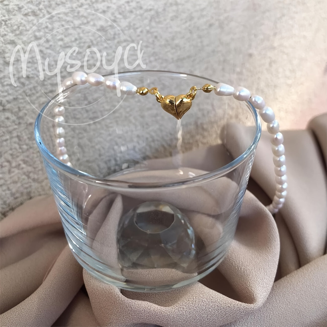 Qoʻlda tayyorlangan uzuk, yangi daryoda oʻsgan guruch shaklidagi marjonlar va yurak pendanti bilan, ayollar yoki erkaklar uchun