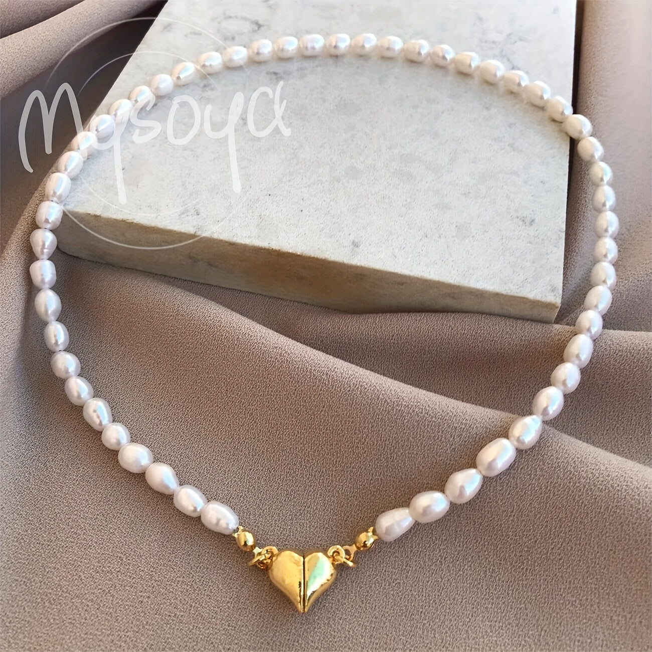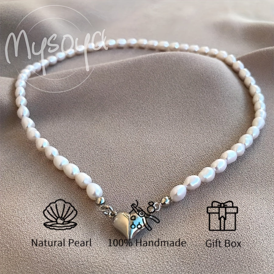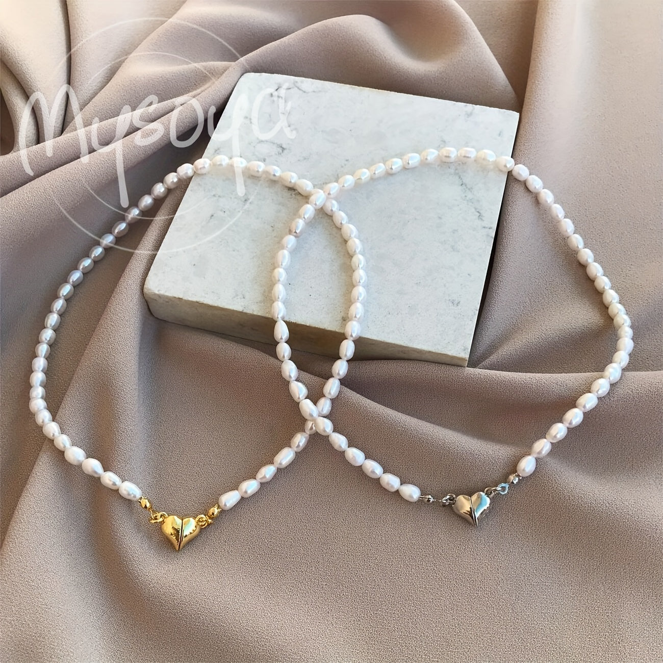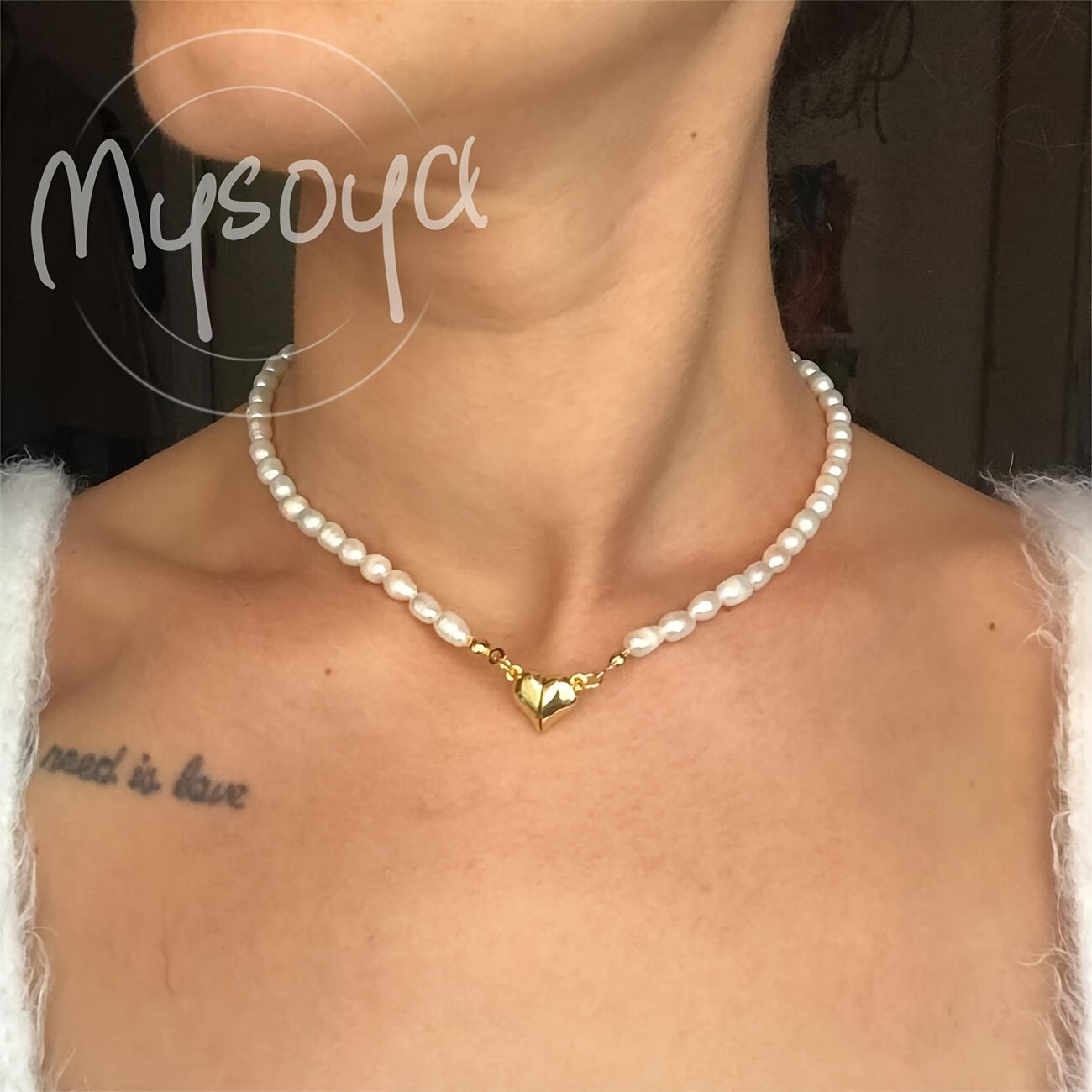 Qoʻlda tayyorlangan uzuk, yangi daryoda oʻsgan guruch shaklidagi marjonlar va yurak pendanti bilan, ayollar yoki erkaklar uchun