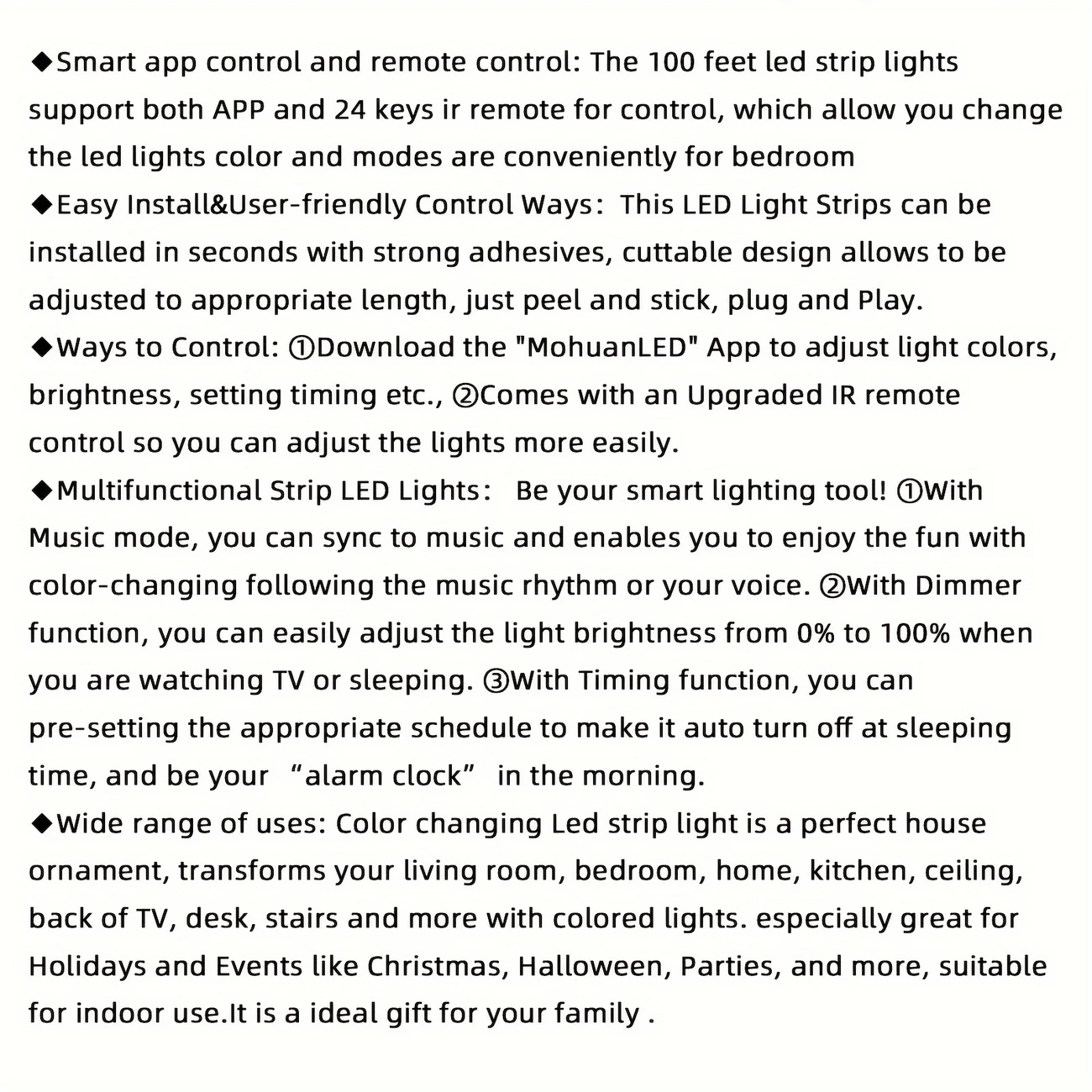 NBBUFF LED chiroq lentalari yotoqxona uchun, 4.88m-30.48m, USB bilan aqlli RGB, dimmable, musiqa bilan sinxronlashadi, timer, o'yin xonasi va uy bezaklari uchun ideal, masofadan boshqariladigan devor bezaklari, mukammal