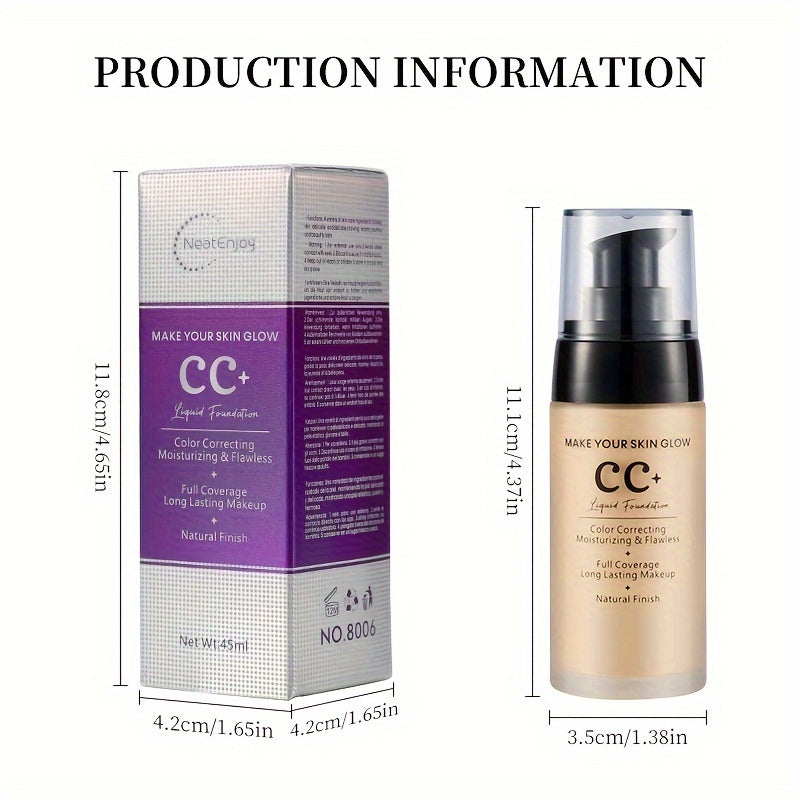NeatEnjoy SPF 50 CC Kreml Asos - Suvga chidamli, uzoq muddatli makiyaj, namlantiruvchi concealer, UV himoyasi, formaldegiddan xoli, 45ml, barcha teri turlari uchun mos