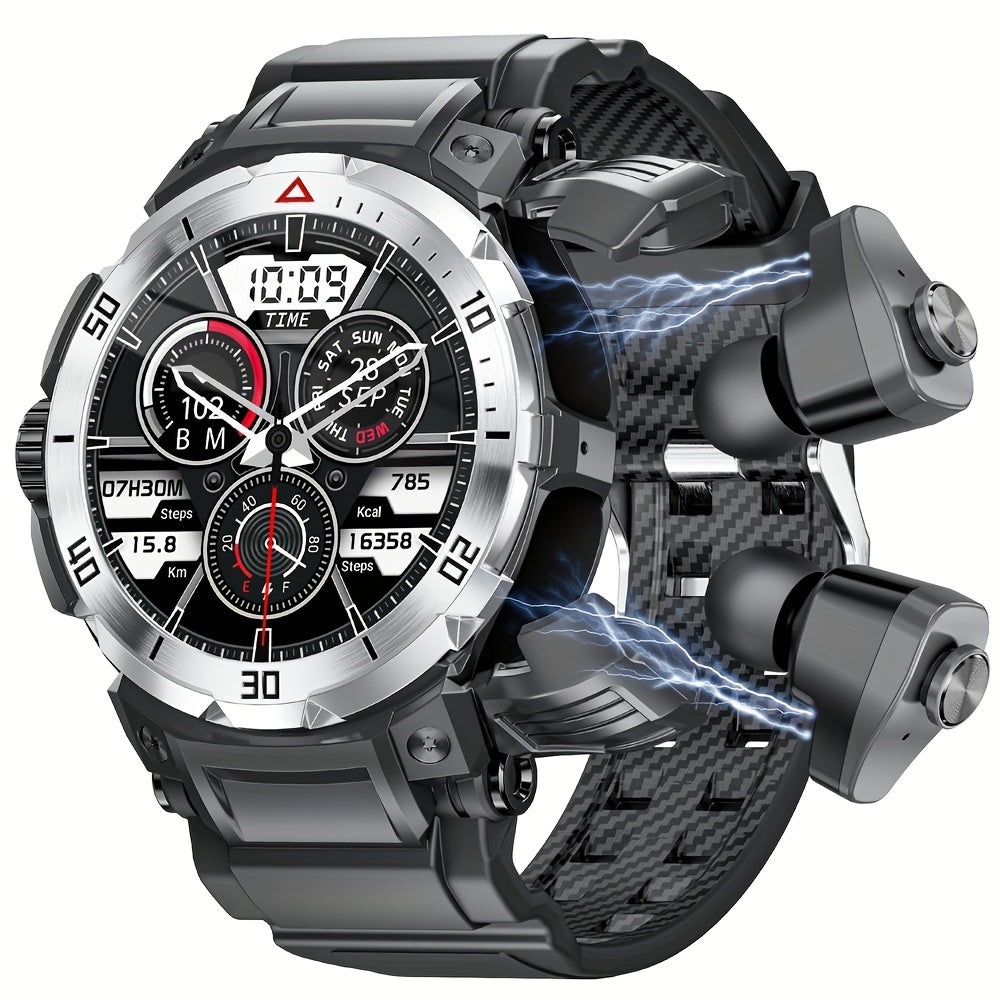 Erkaklar uchun yangi 3 in 1 aqlli soat, quloqchinlar, musiqa, fitnes kuzatuvchi, 1.46 dyuym HD ekran, qo'ng'iroq qilish/olish, dinamik, yozish, sport kuzatuvchi, iOS va Android bilan mos, uzoq kutish vaqti.
