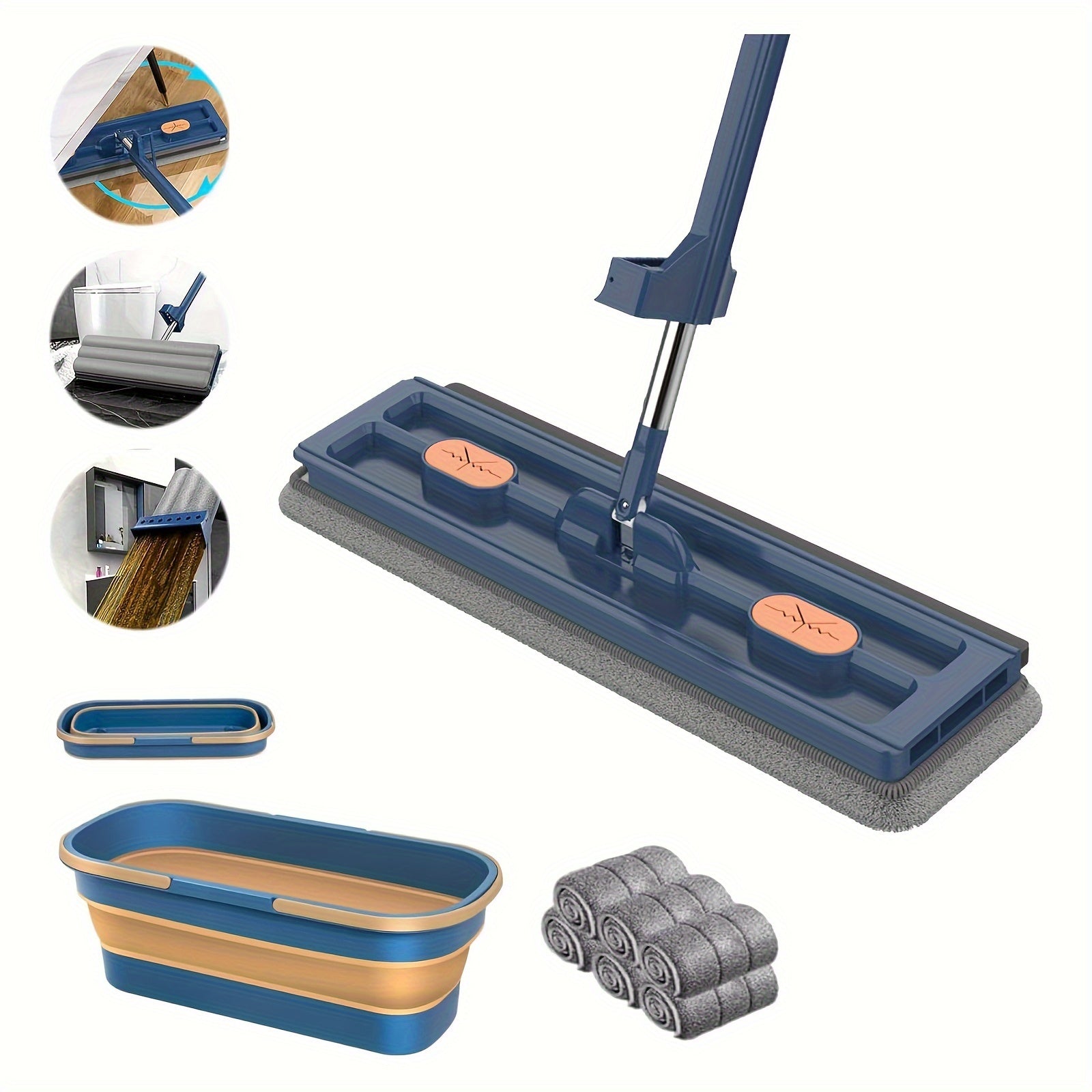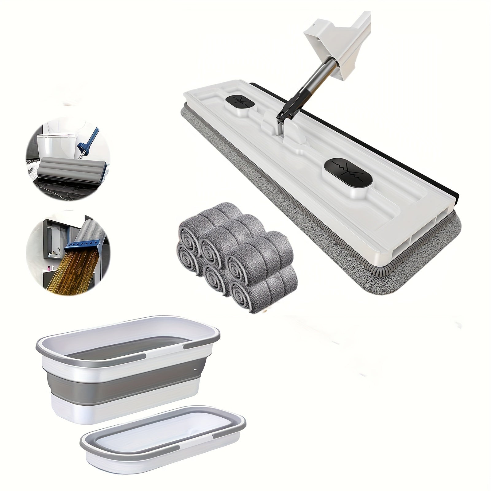 2024 yil uchun yangi va yaxshilangan! Katta tekis mopu to'plami, chelak va siqish vositasi - 360° aylanish, oshxona, hammom, yashash xonasi, yotoqxona uchun nam/quruq tozalashda ideal - uy tozalash ehtiyojlari uchun mustahkam plastik vosita