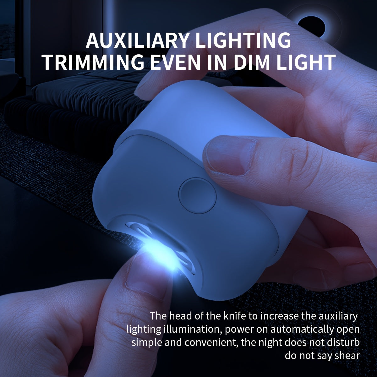 Yengil ko'chirish uchun LED chiroqli yangi ixcham elektr tirnoq kesgichi, USB zaryadlash va uzoq muddatli foydalanish uchun 300mAh batareya.