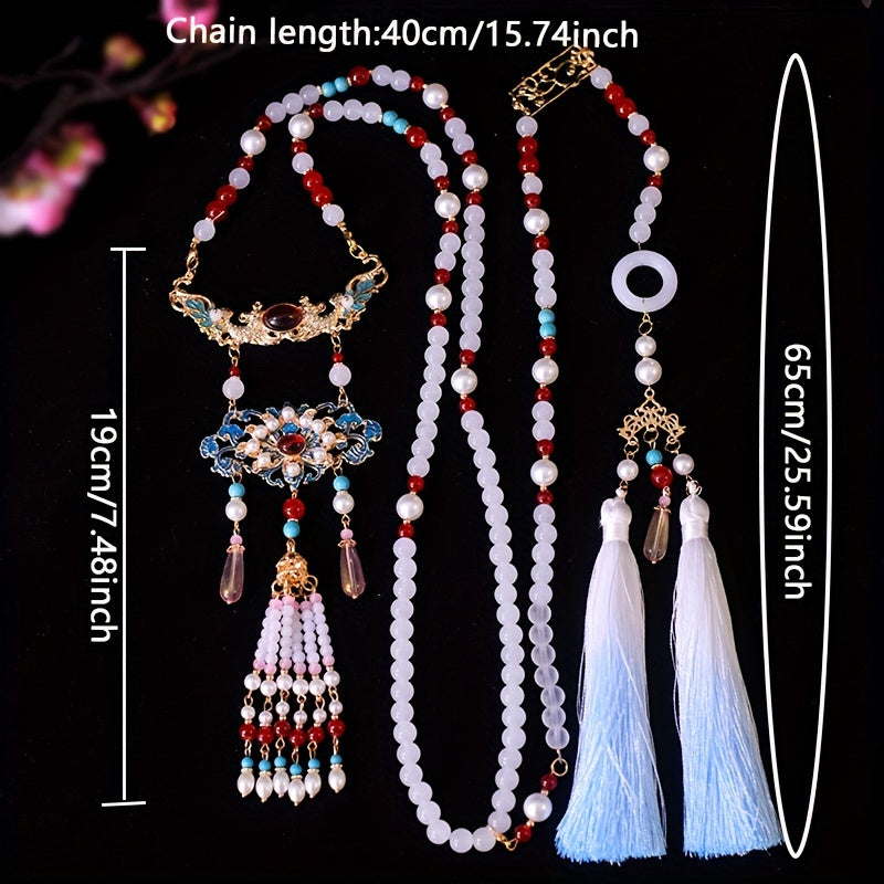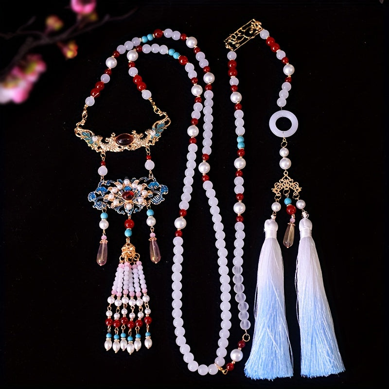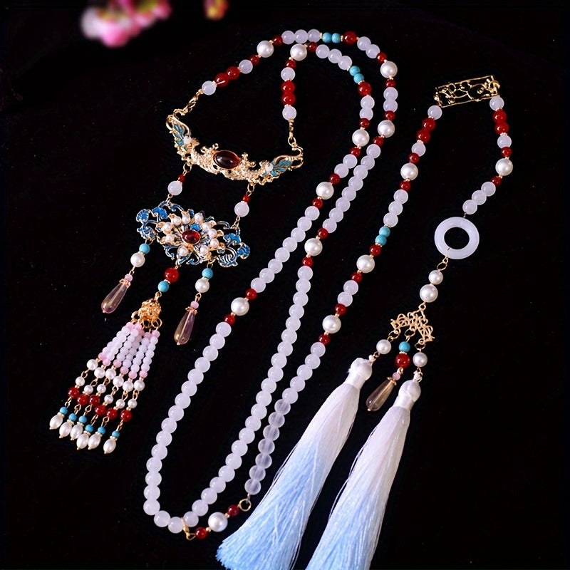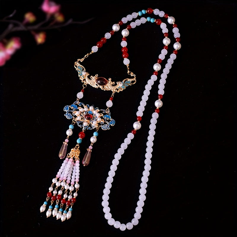 Yangi, nafis marvarid bilaguzuk, tassel va pendant bilan, an'anaviy Xitoy uslubida ishlab chiqilgan. Bayram tadbirlari va har kuni kiyish uchun mukammal.