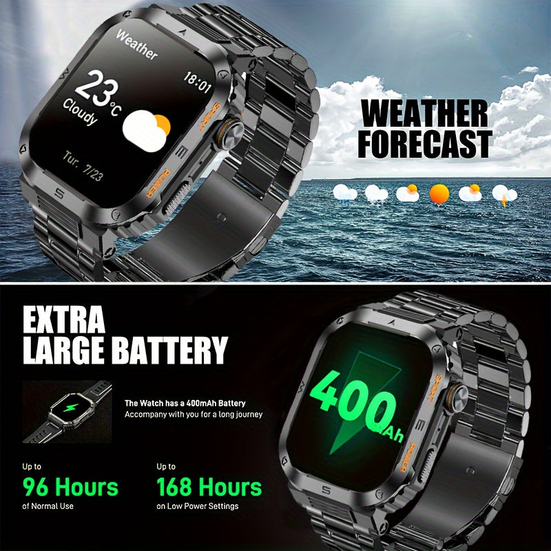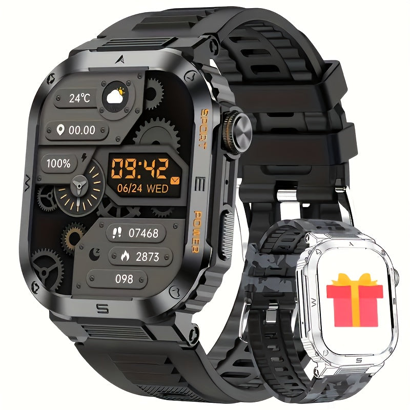 Yangi moda yuqori sifatli erkaklar uchun aqlli soat, simsiz qo'ng'iroq qilish, AI ovozli yordamchi, IP68 darajasi, metall ramka va sport imkoniyatlari bilan.