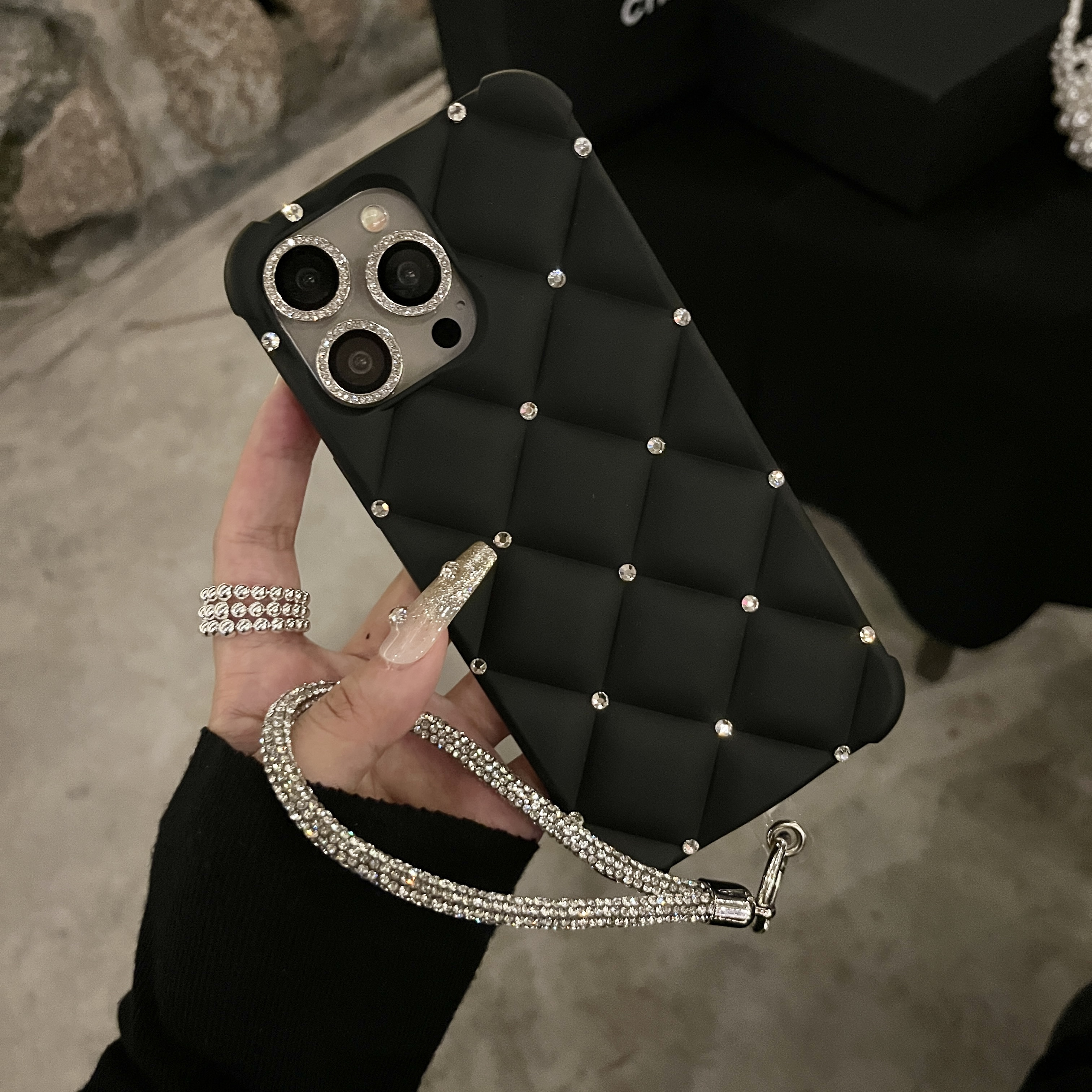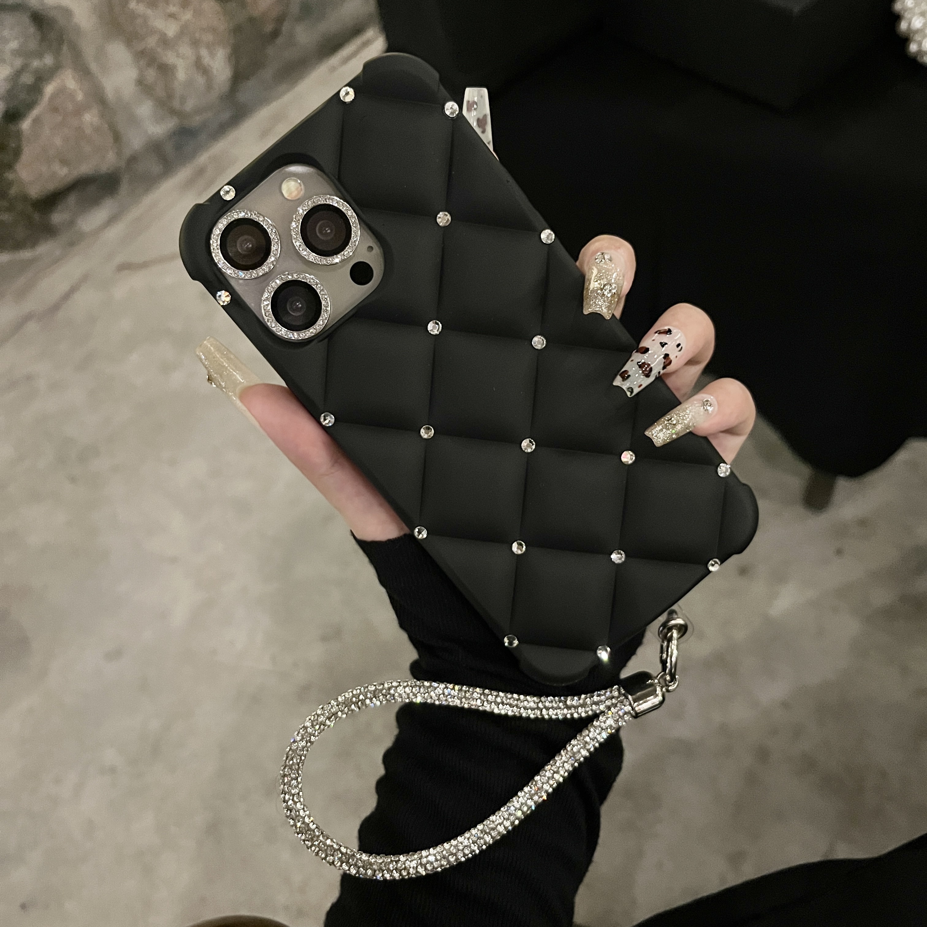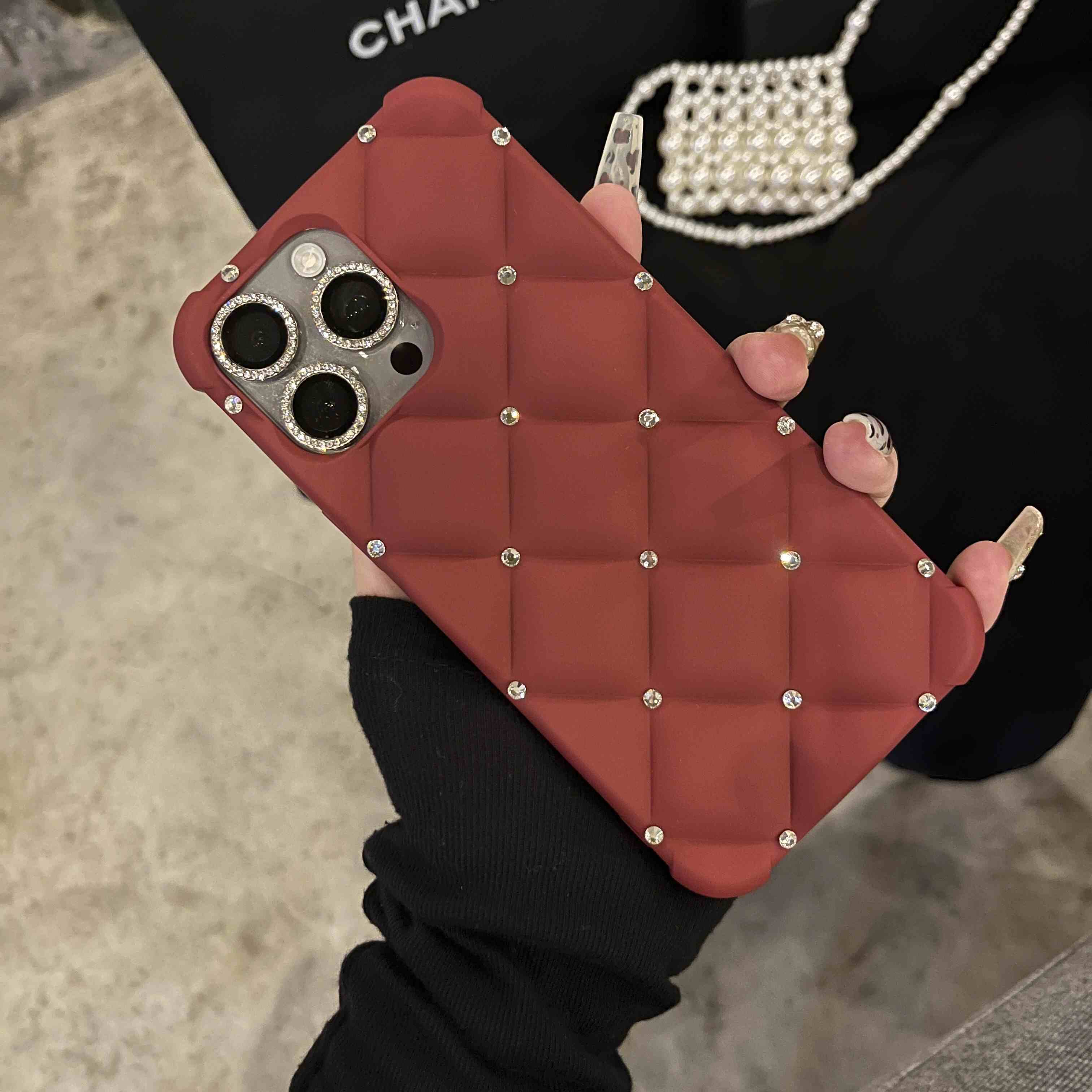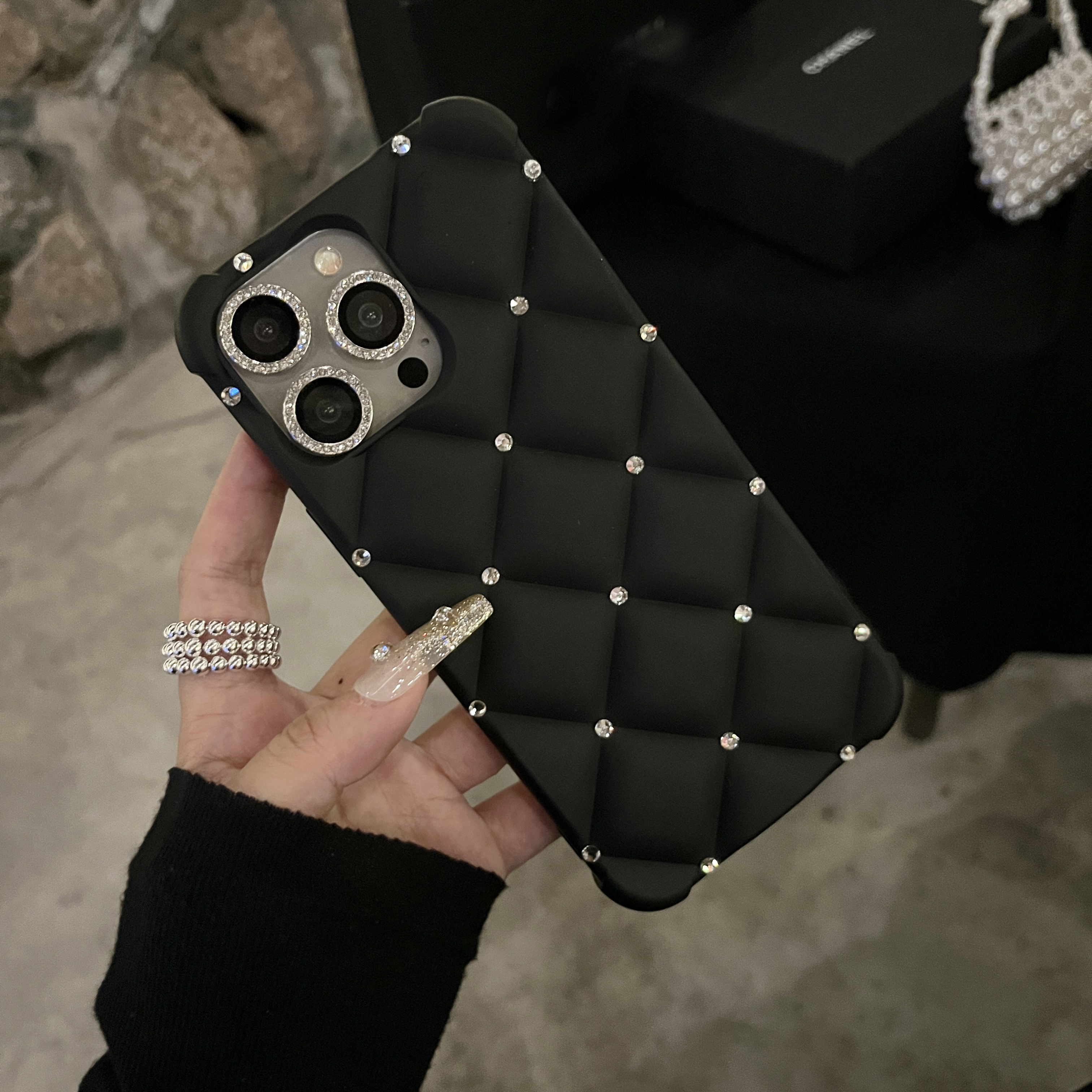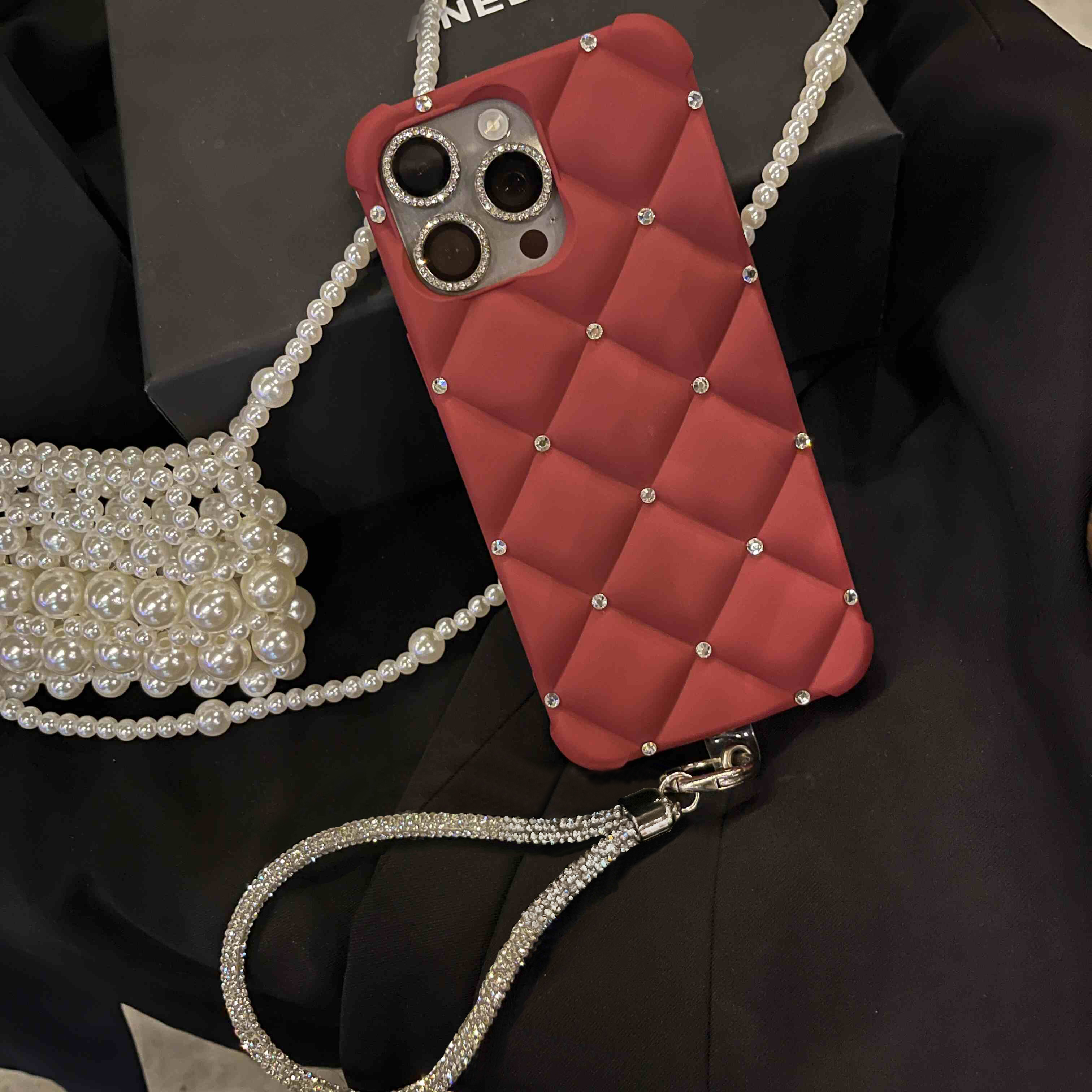 Yangi zamonaviy teriga o'xshash ayollar uslubidagi telefon qopqog'i, yuqori sifatli rhinestone tafsilotlari bilan, Apple iPhone'lar uchun mos keladi. To'liq rhinestone bilaguzuk va to'rt burchakli tushishdan himoya dizayni mavjud. Mukammal sifatida