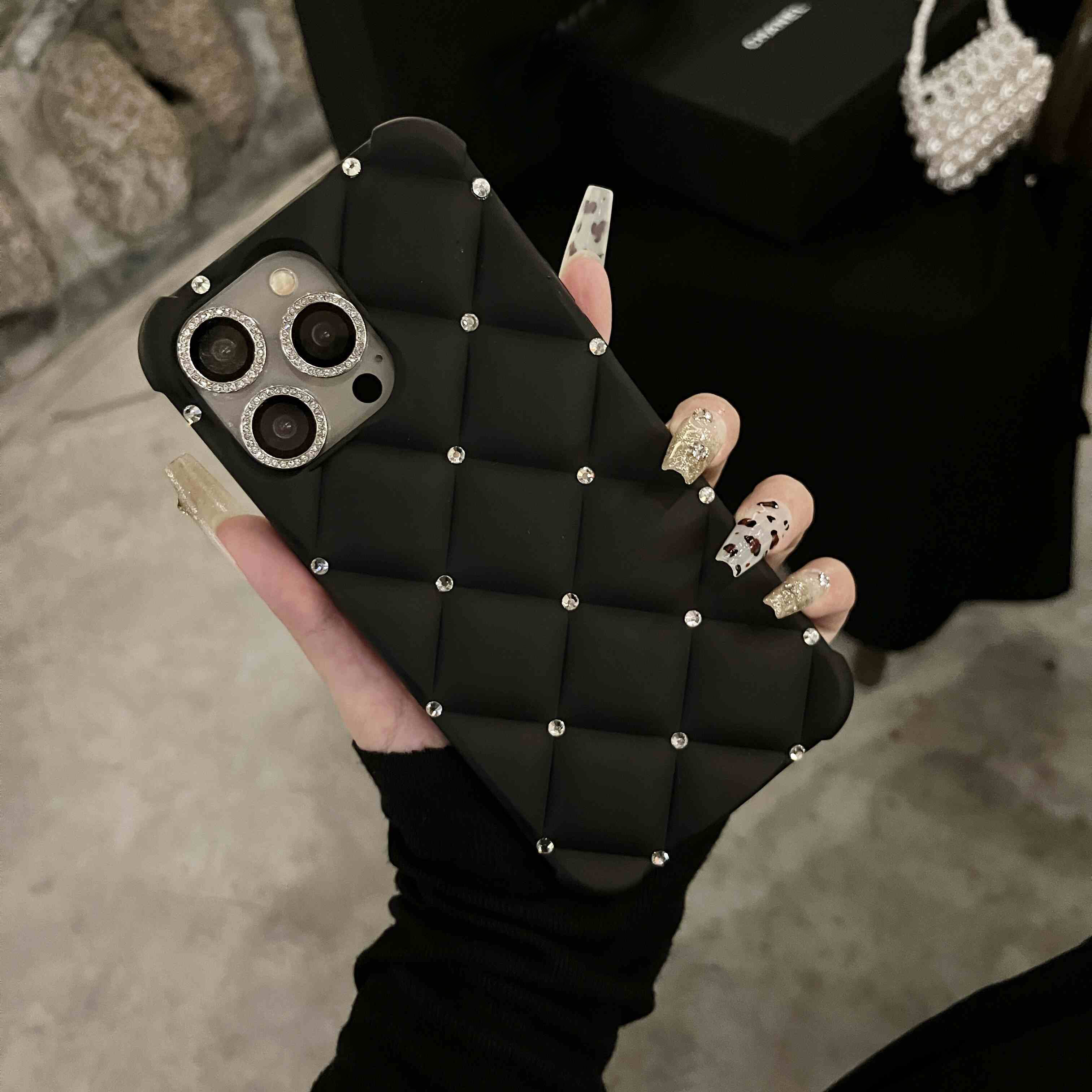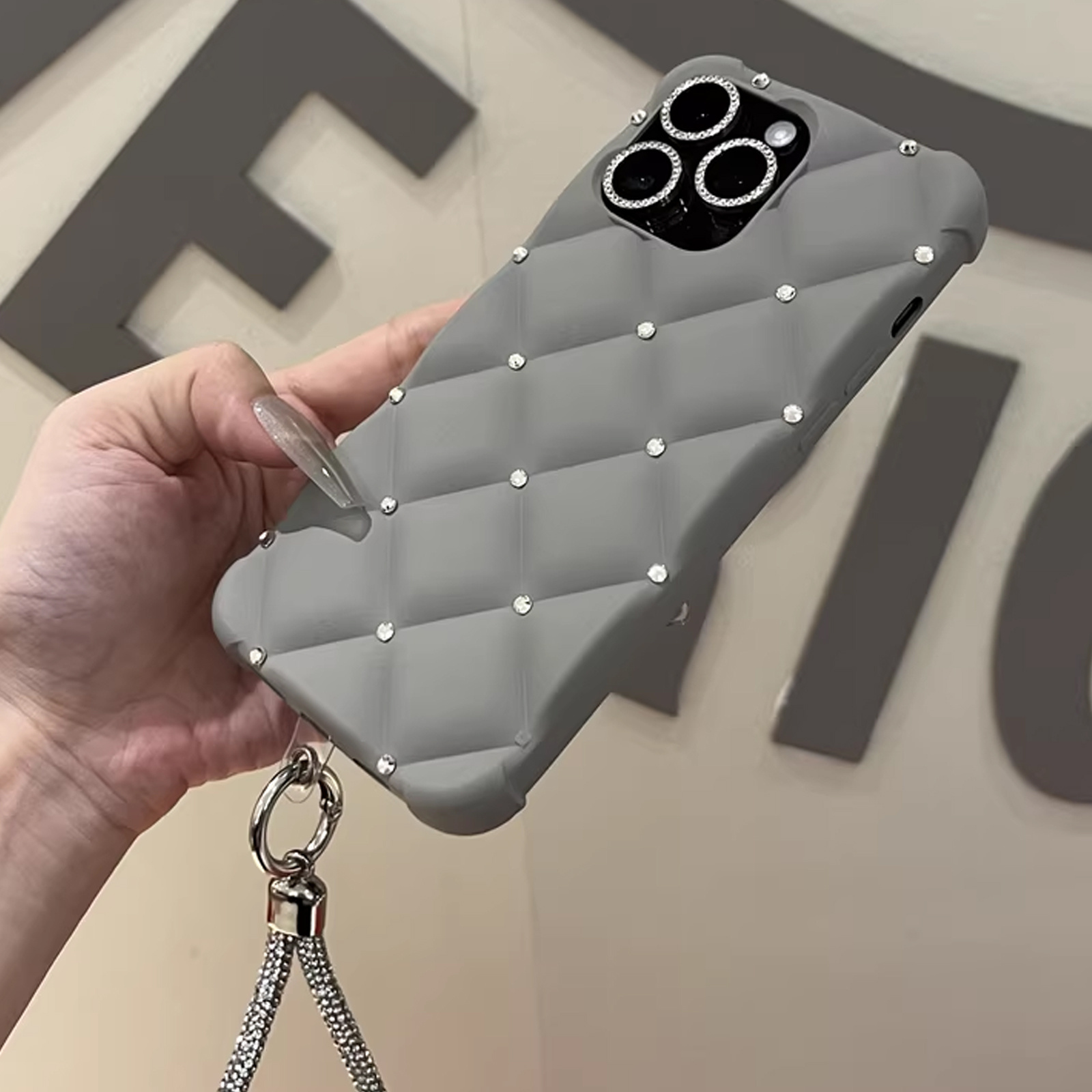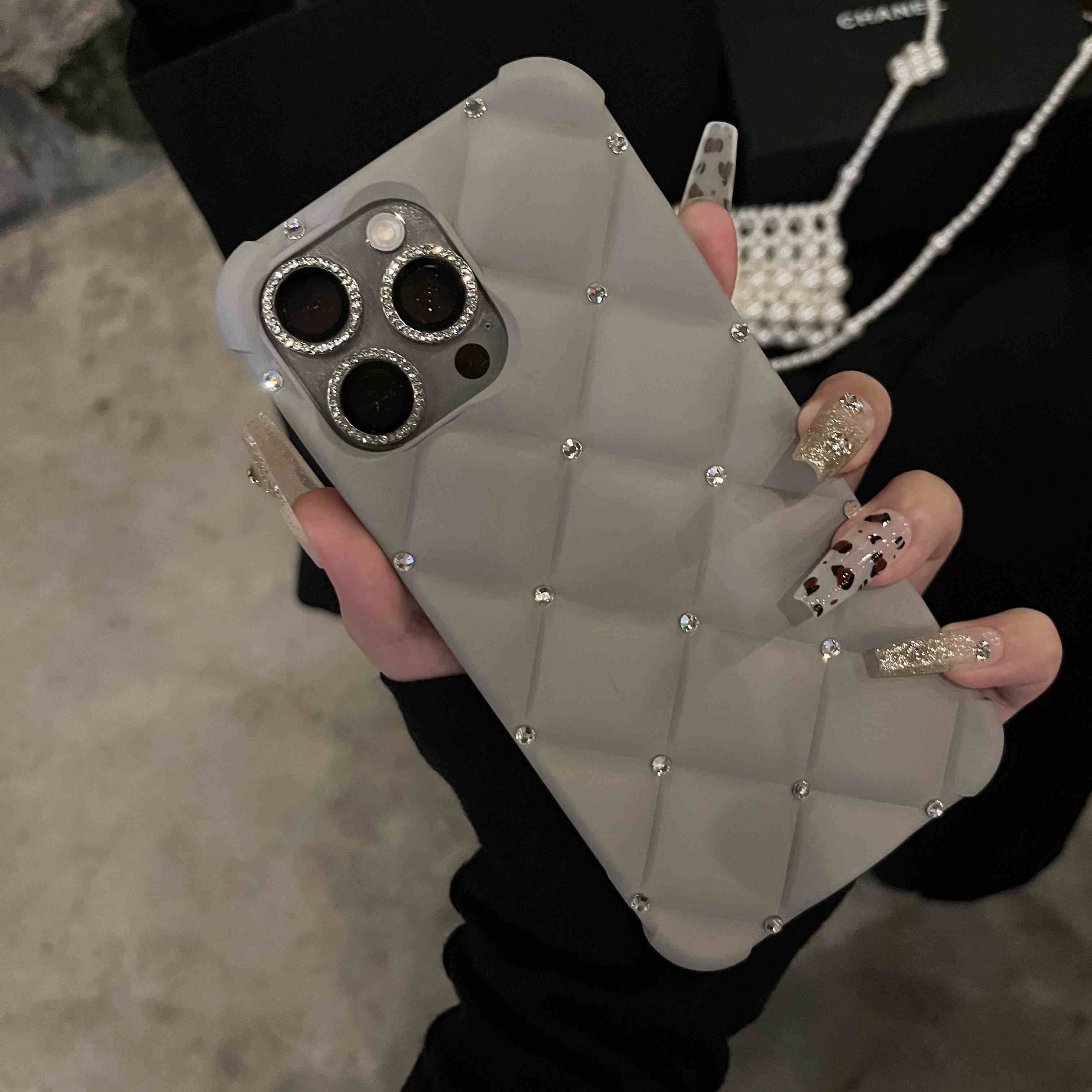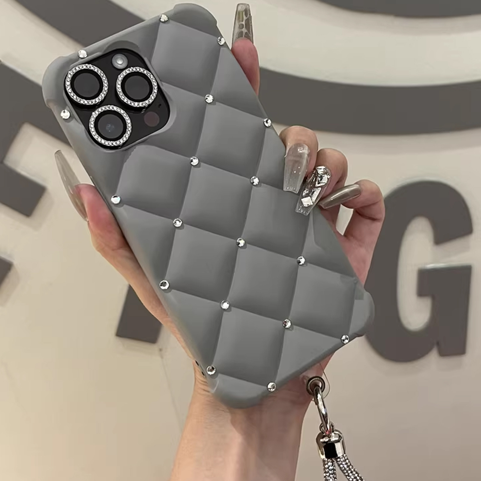 Yangi zamonaviy teriga o'xshash ayollar uslubidagi telefon qopqog'i, yuqori sifatli rhinestone tafsilotlari bilan, Apple iPhone'lar uchun mos keladi. To'liq rhinestone bilaguzuk va to'rt burchakli tushishdan himoya dizayni mavjud. Mukammal sifatida