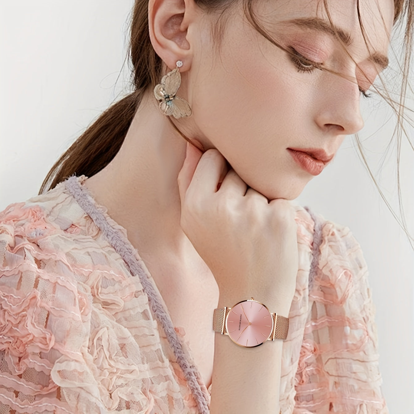 Rangli zanglamaydigan po'latdan yasalgan ayollar soati, kvarts, zamonaviy vaqt o'lchagich