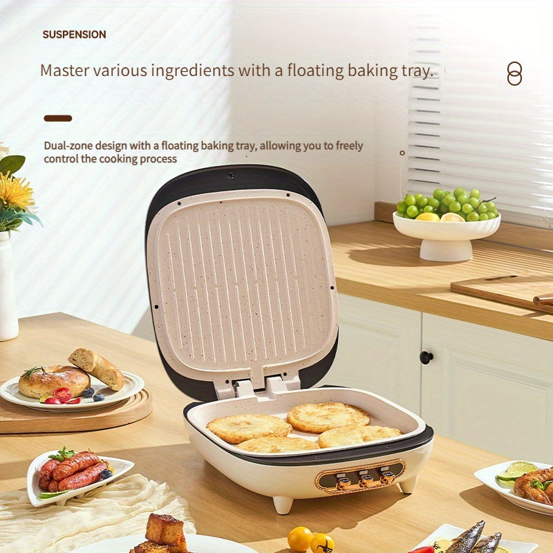 Uy uchun mo'ljallangan yangi katta ikki tomonlama pancake temir qilish mashinasi, chuqur plitalar bilan.