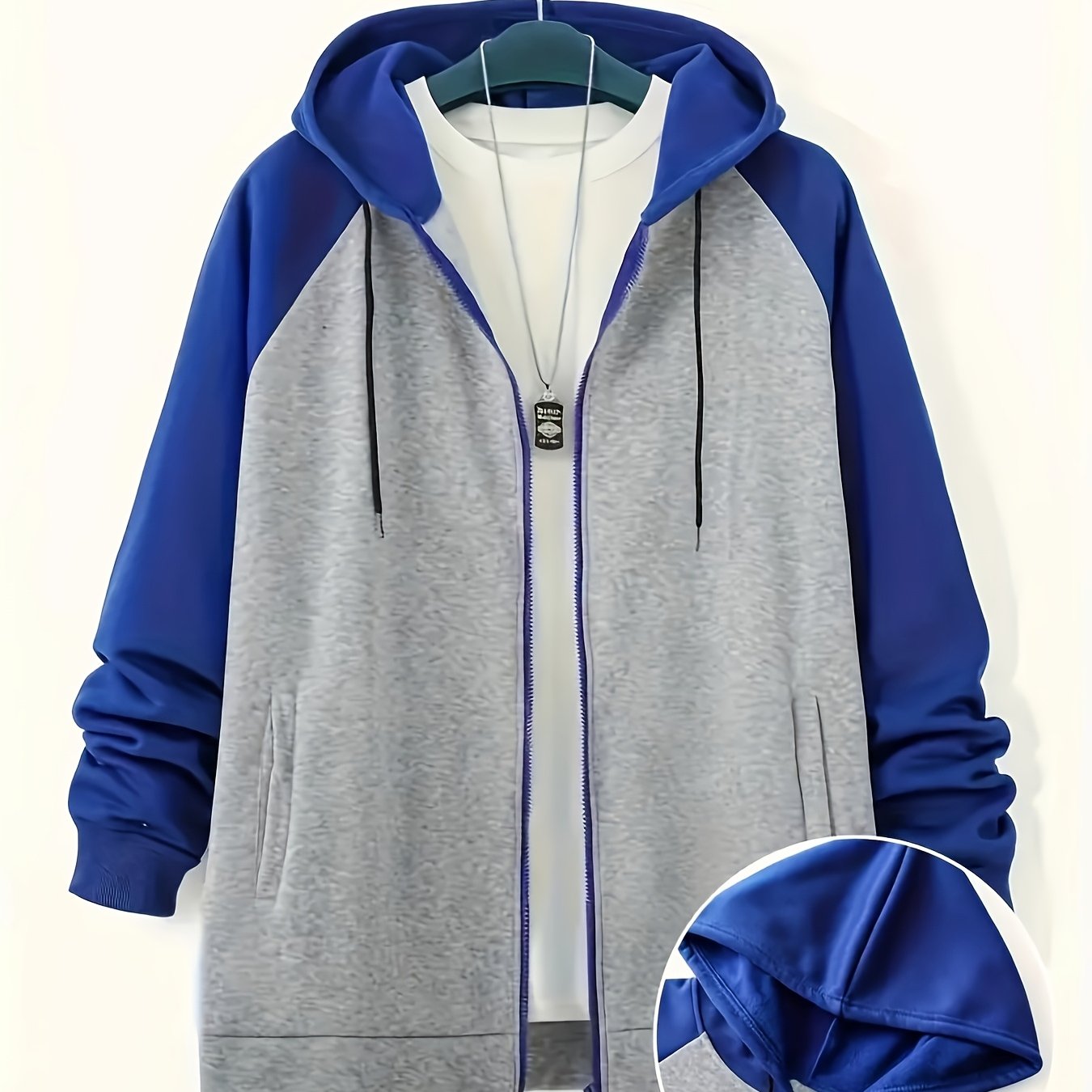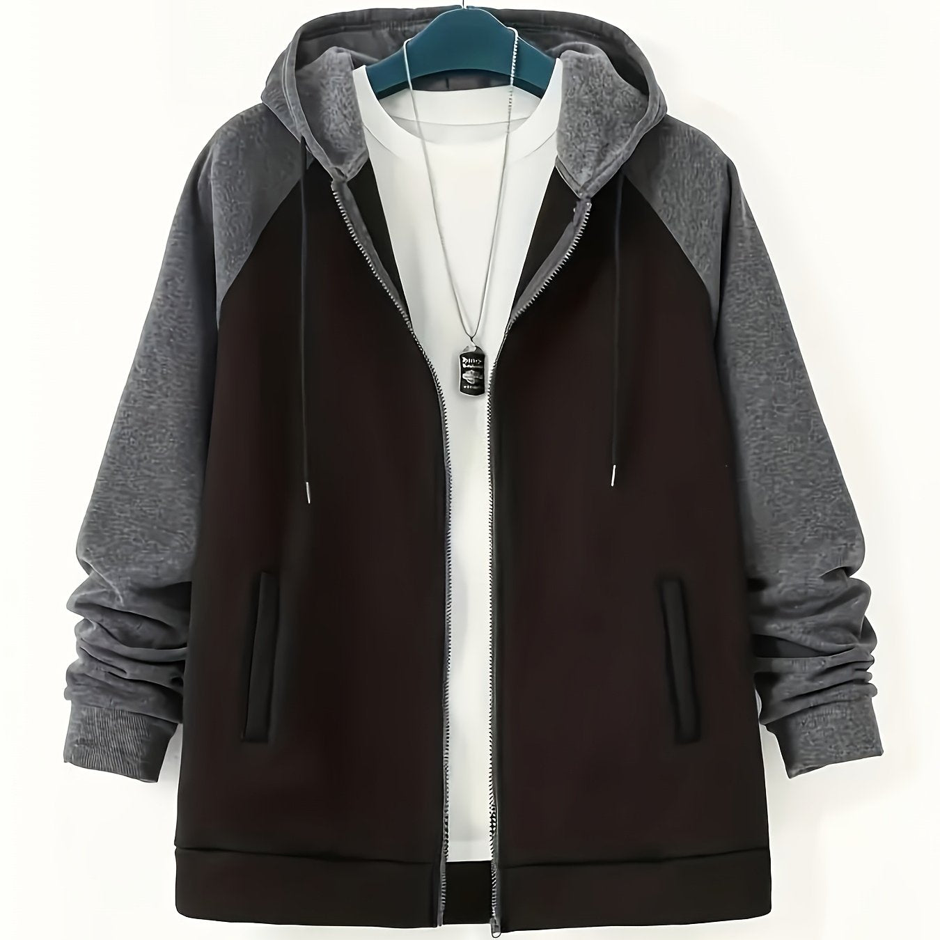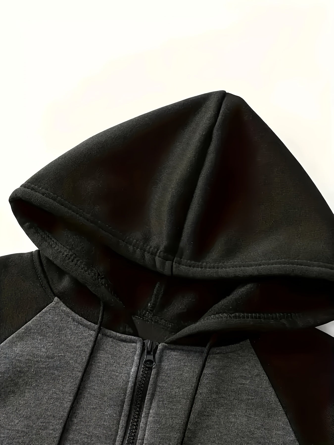 Yangi erkaklar uchun plussiz erkaklar uchun kontrast rangli fermuarli kurtka, kapüşonli plus velur sviter.