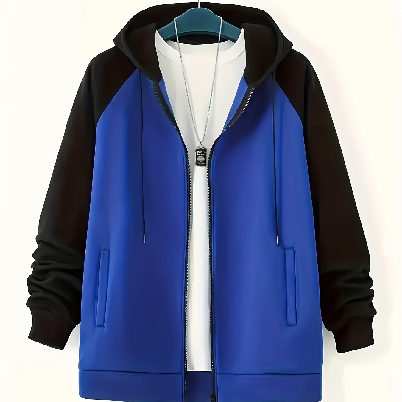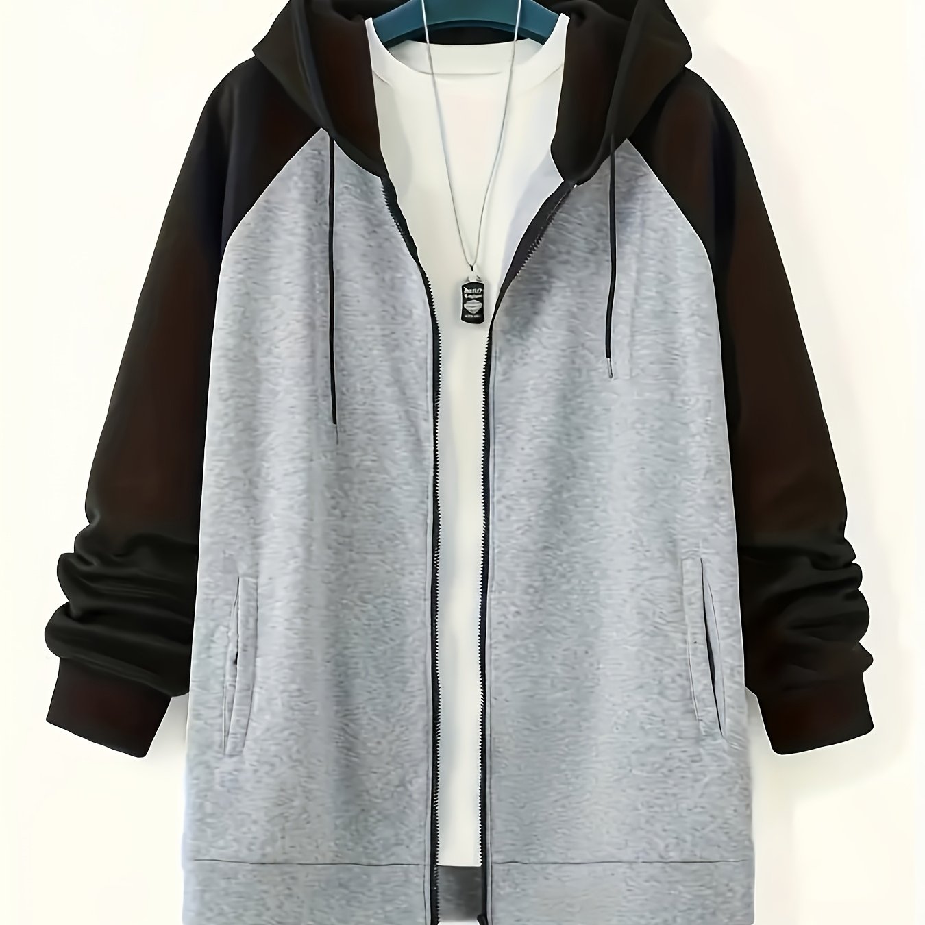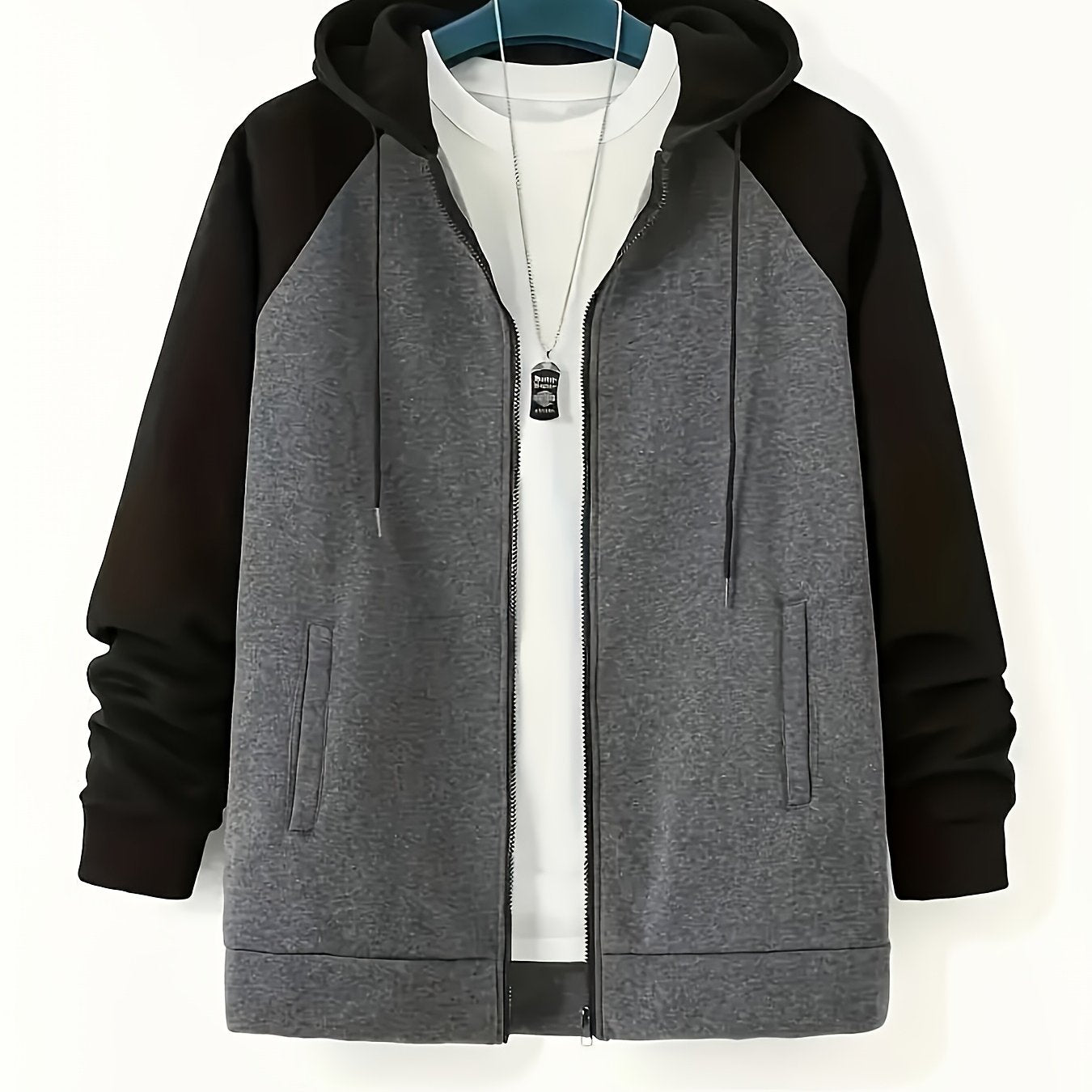 Yangi erkaklar uchun plussiz erkaklar uchun kontrast rangli fermuarli kurtka, kapüşonli plus velur sviter.