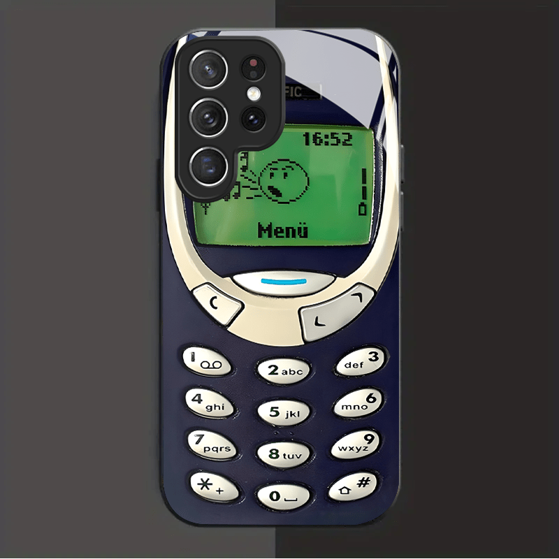Turli Samsung Galaxy modellari uchun mo'ljallangan, kreativ silikondan tayyorlangan mat qoplamali yangi retro uslubidagi qora telefon qopqog'i, qattiqlashtirilgan shishadan tayyorlangan.
