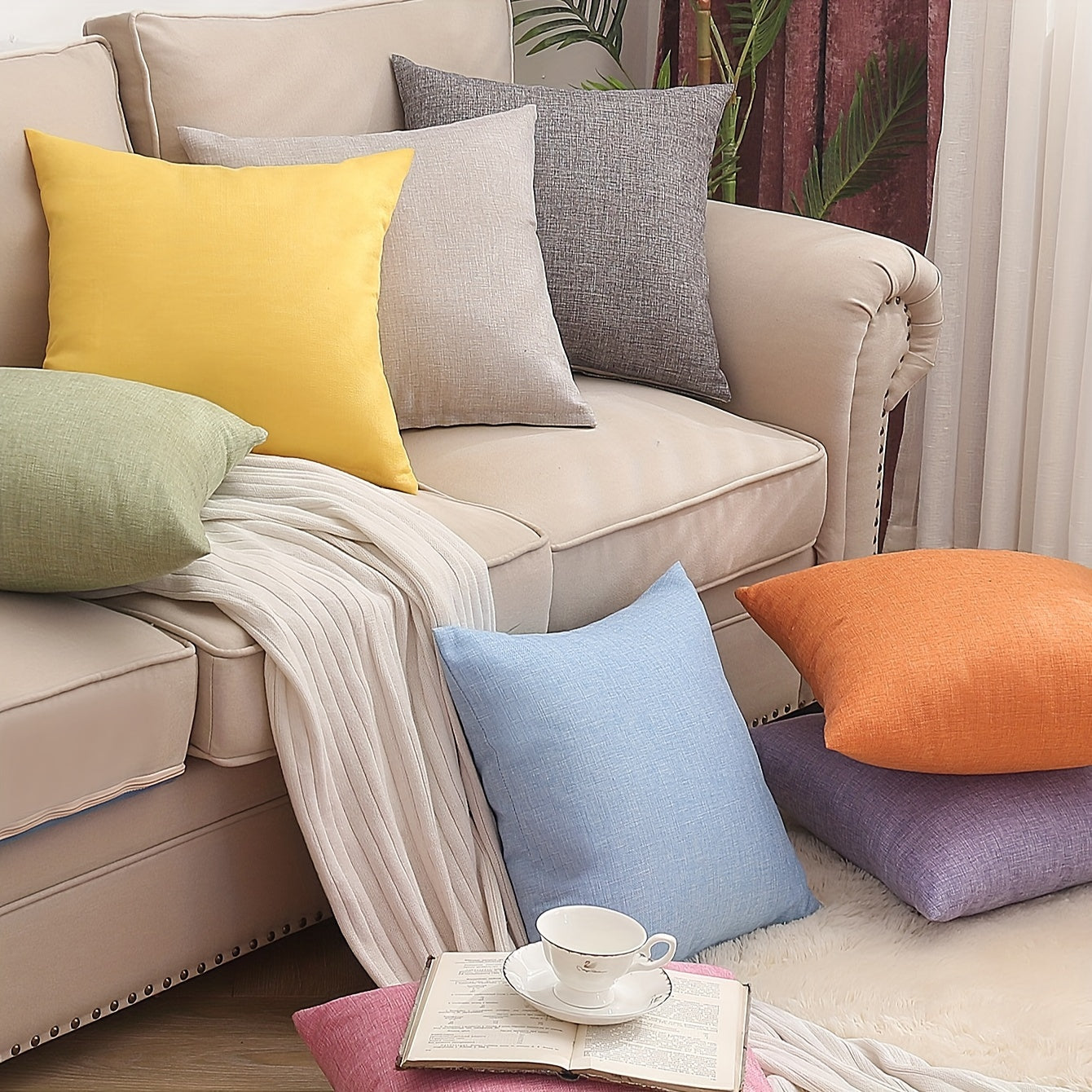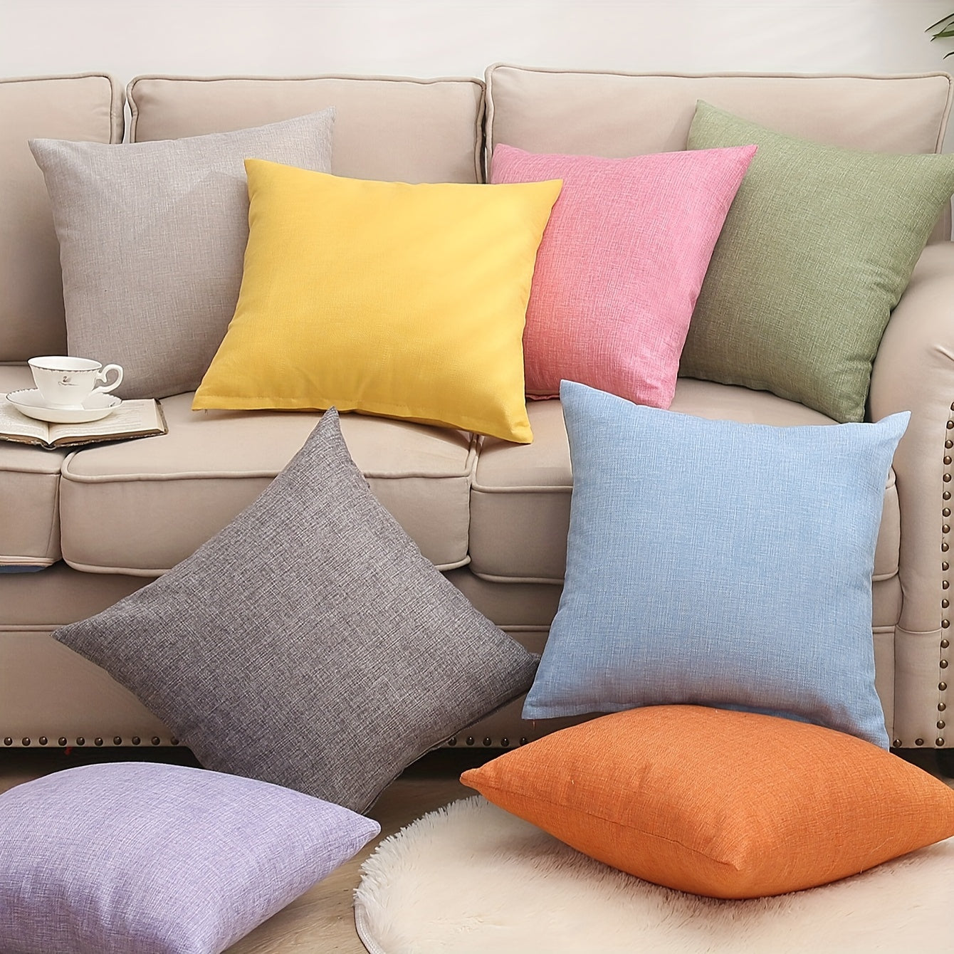 Yangi bir rangli flax yostiq qopqog'i, yostiq yadroisiz.