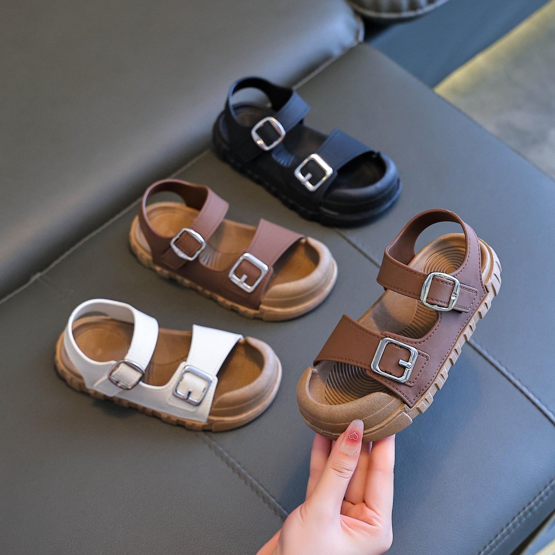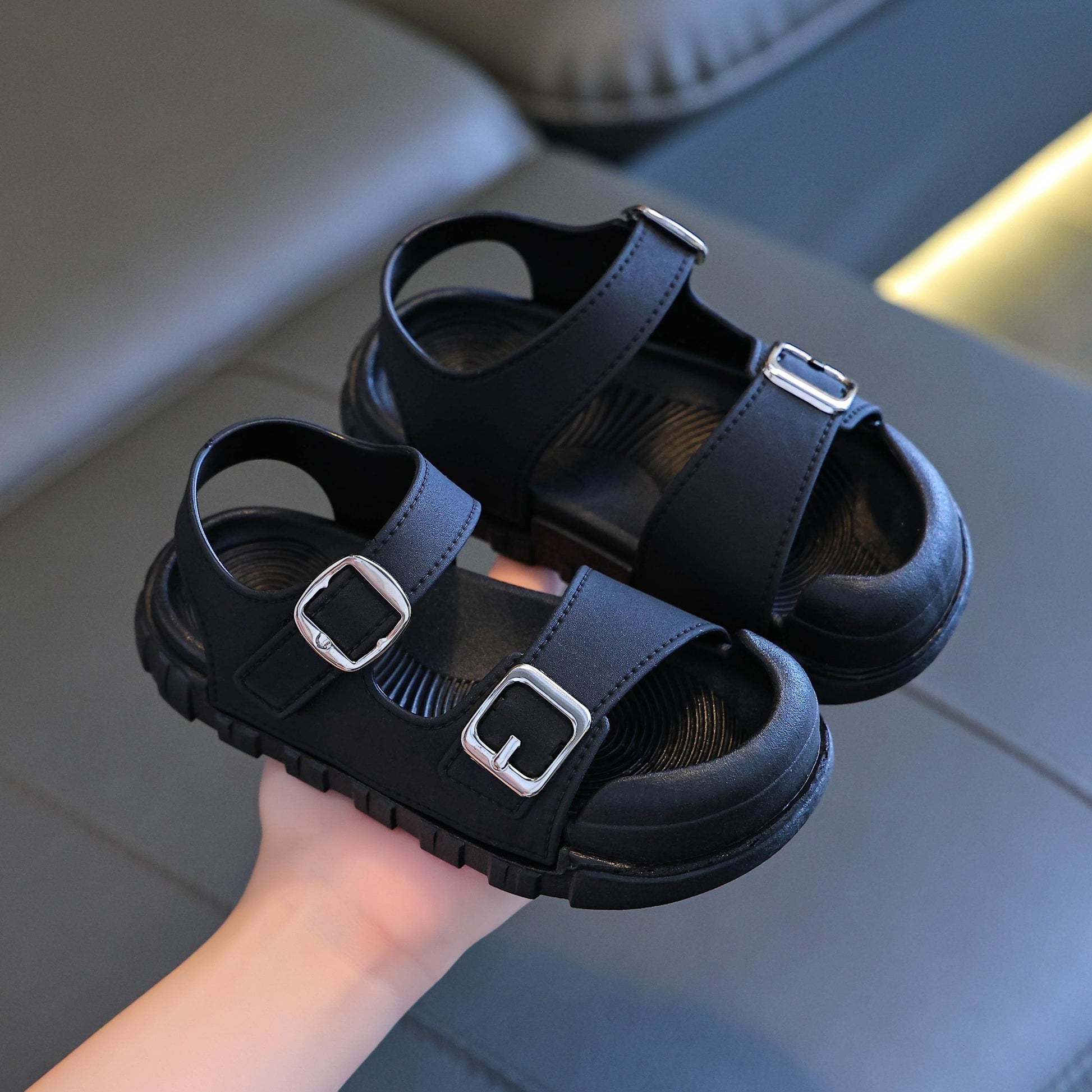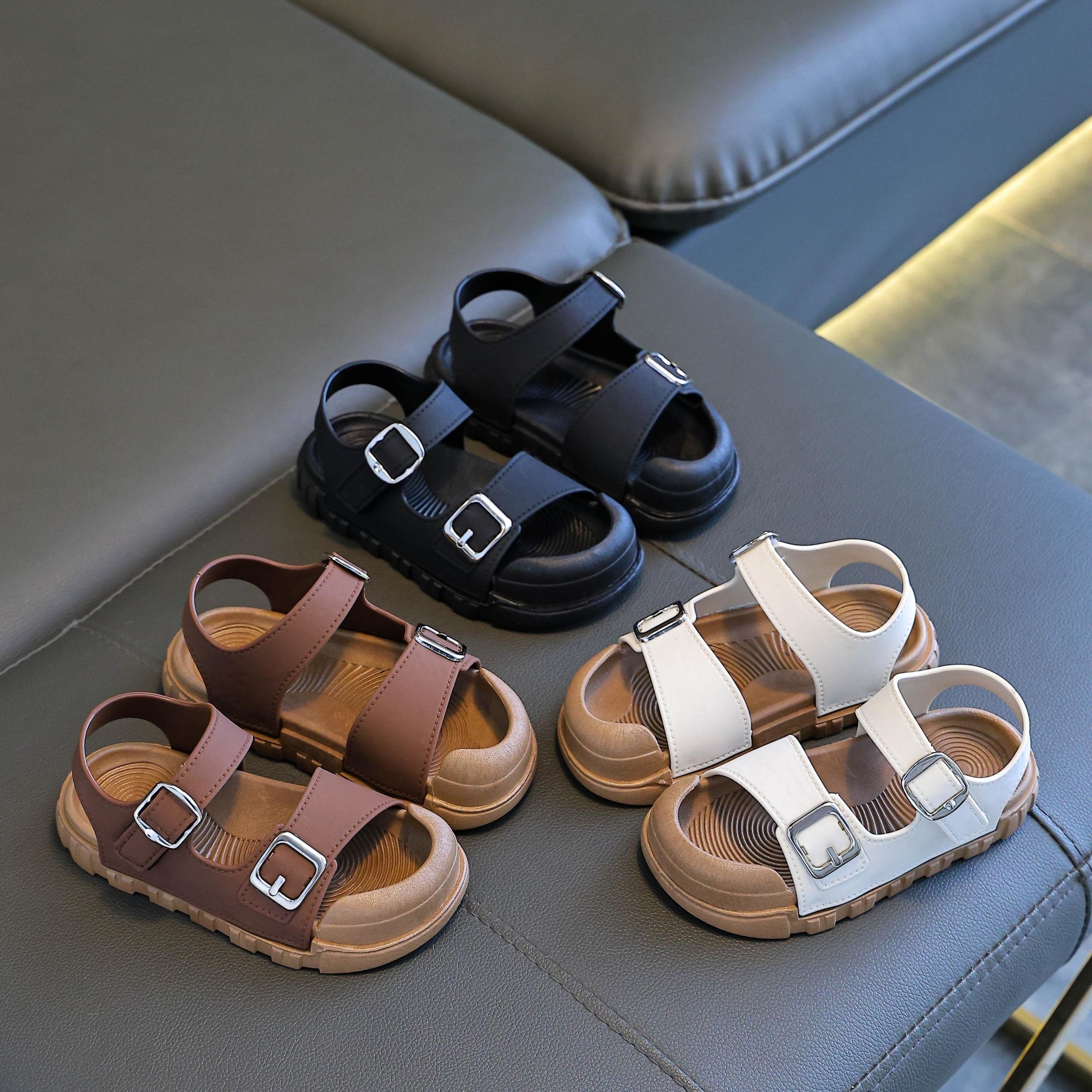 Yangi yozgi kelish: Yumshoq taglikka ega, nafas oladigan PVC yuqori qismi, o'g'il va qizlar uchun dumaloq barmoq dizayni bilan zamonaviy bir rangli bolalar sandallari. Tasodifiy va ochiq havoda faoliyatlar uchun ideal. Trendy va
