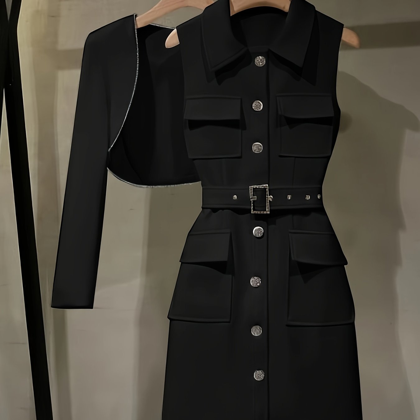 Nian Nian Directional zamonaviy ayollar uchun biznes kiyimini taklif etadi, qora blazer va o'rta uzunlikdagi qalam yubka bilan.