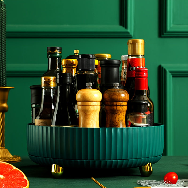 Aylanuvchi plastmassa oshxona tashkilotchisi Lazy Susan, ziravorlar, mevalar va kosmetika uchun