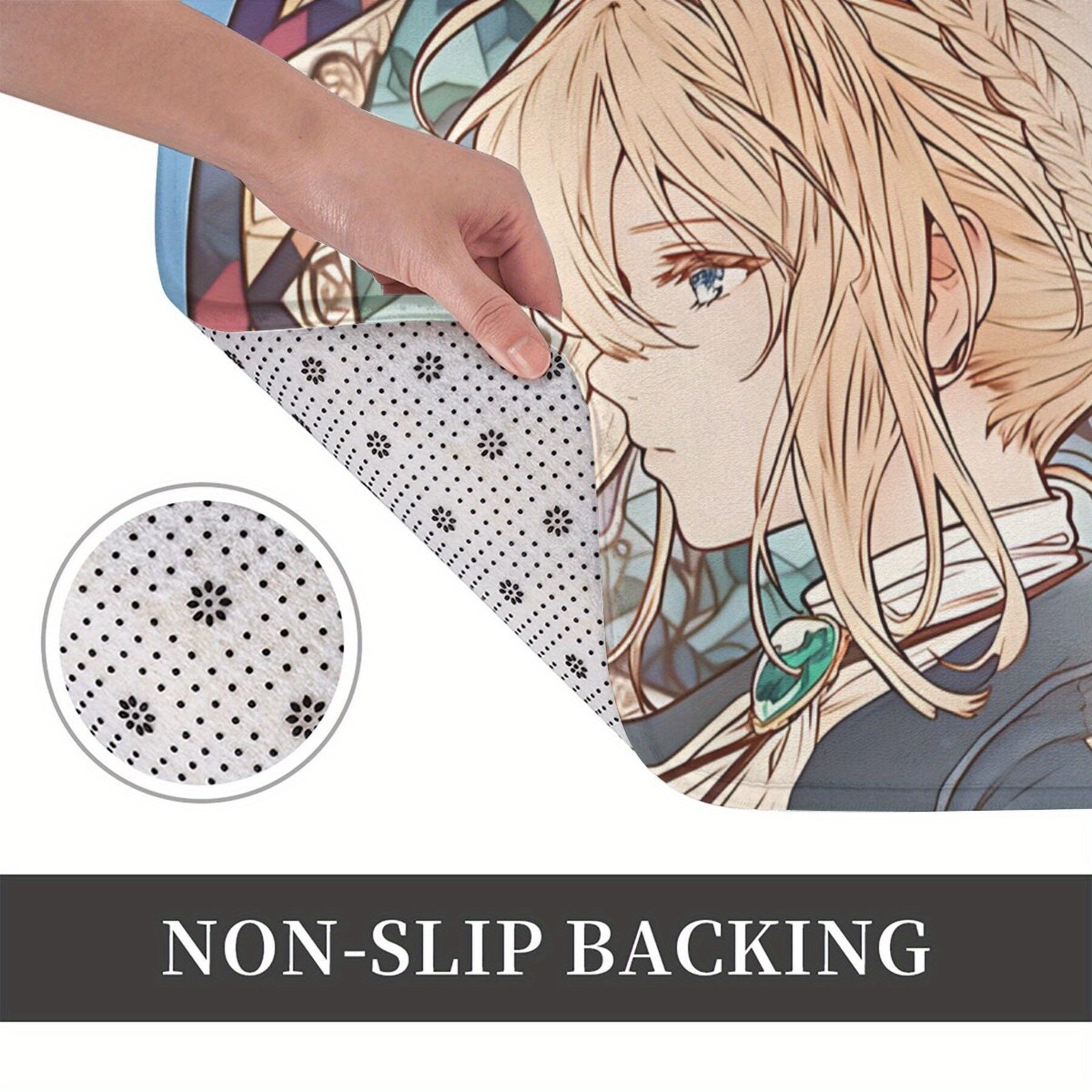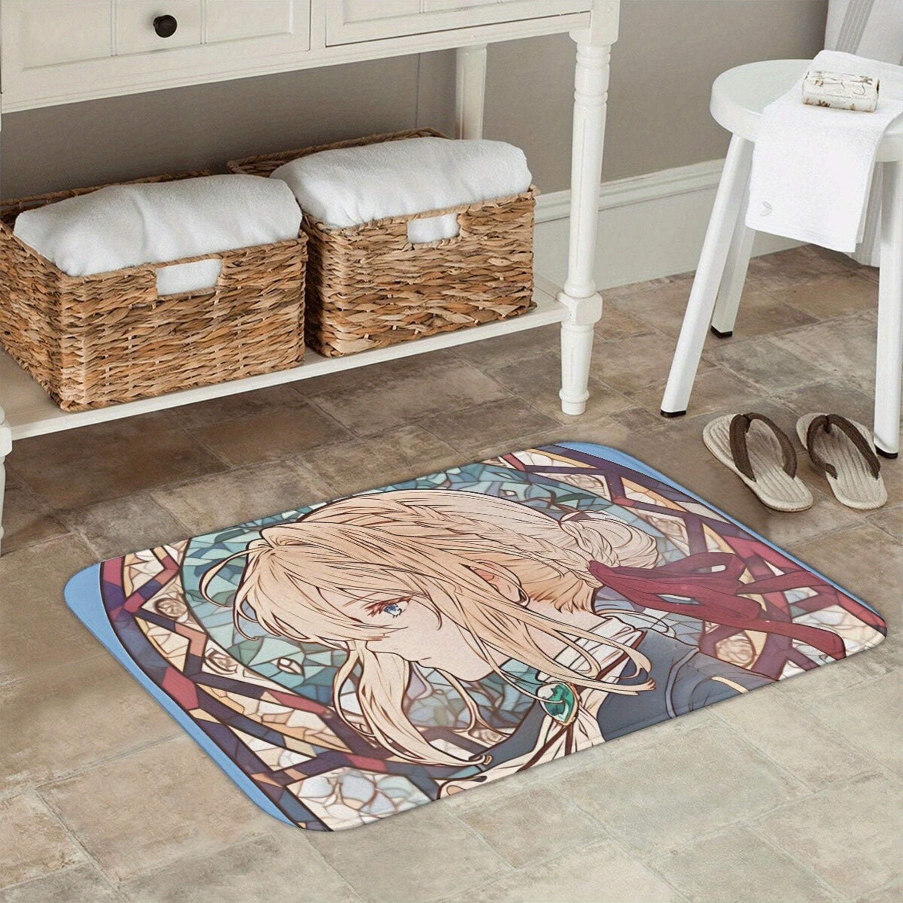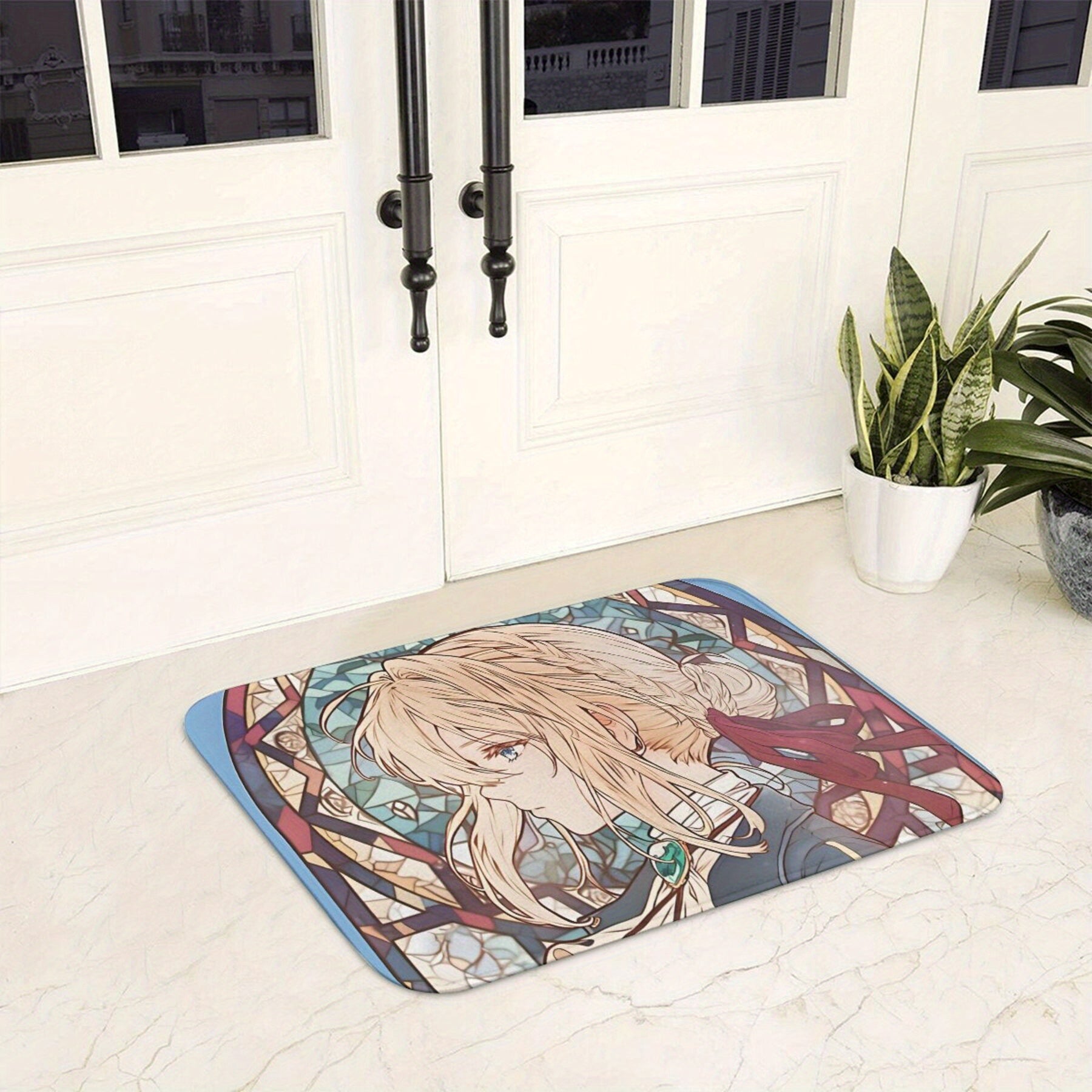 Suv o'tkazmaydigan, mashinada yuviladigan polyester gilam, uy bezatish uchun rangli shisha dizayni - Merry Christmas Violet Evergarden