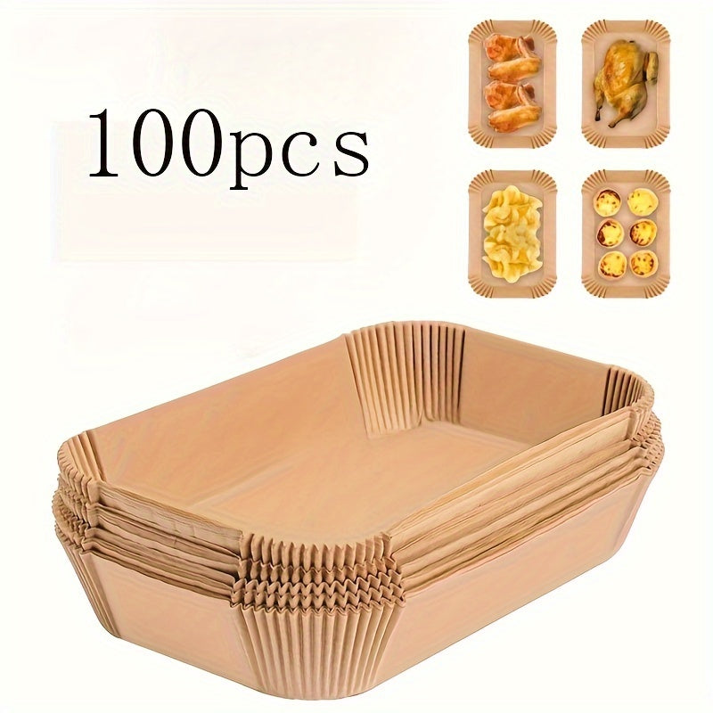 "Yopishmaydigan Havo Fryeri uchun Bir Martalik Qog'oz Qoplama - 100 ta to'plam, Yog' va Suvga Qarshi, To'rtburchak Shakl, Ikki Qavatli Fryer uchun Mukammal, Sog'lom Pishirish uchun Zaruriy Oshxona Asboblari"