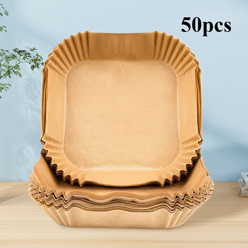 Non-Stick Silikon Qog'oz Havo Fryer Qoplamalari - 50/100 Ta'lim: Oziq-ovqat uchun xavfsiz, Tozalash oson, Joyni tejovchi, Pechda xavfsiz foydalanish uchun bir martalik pishirish varaqalari.