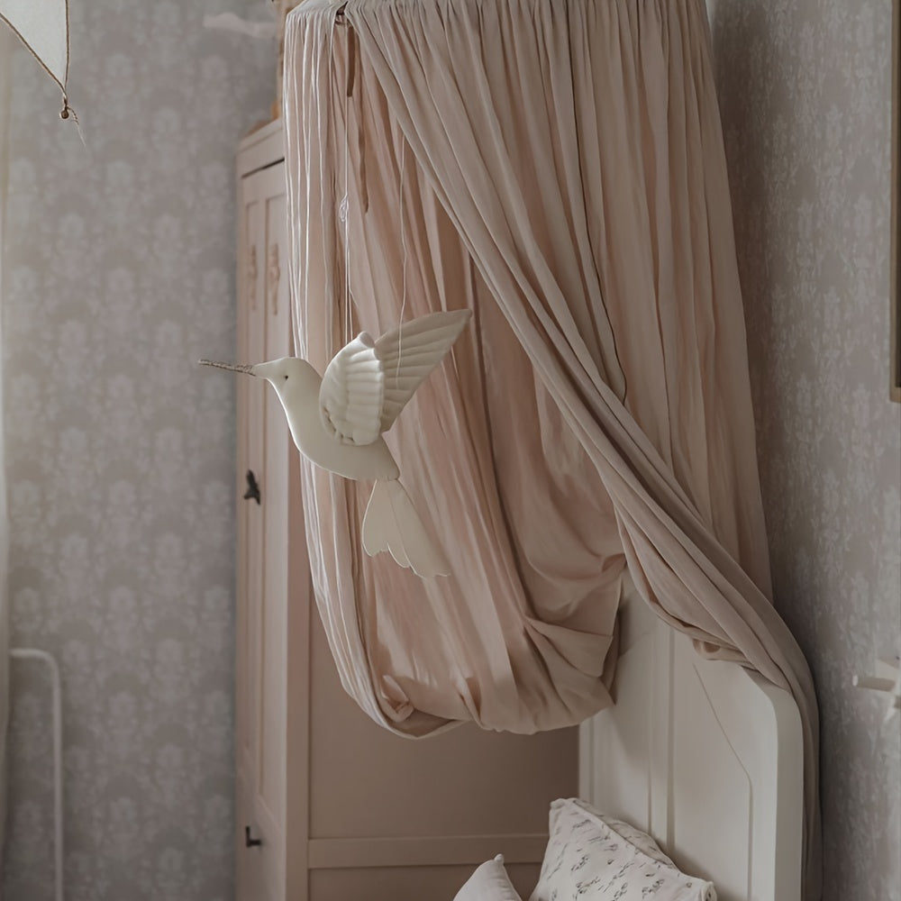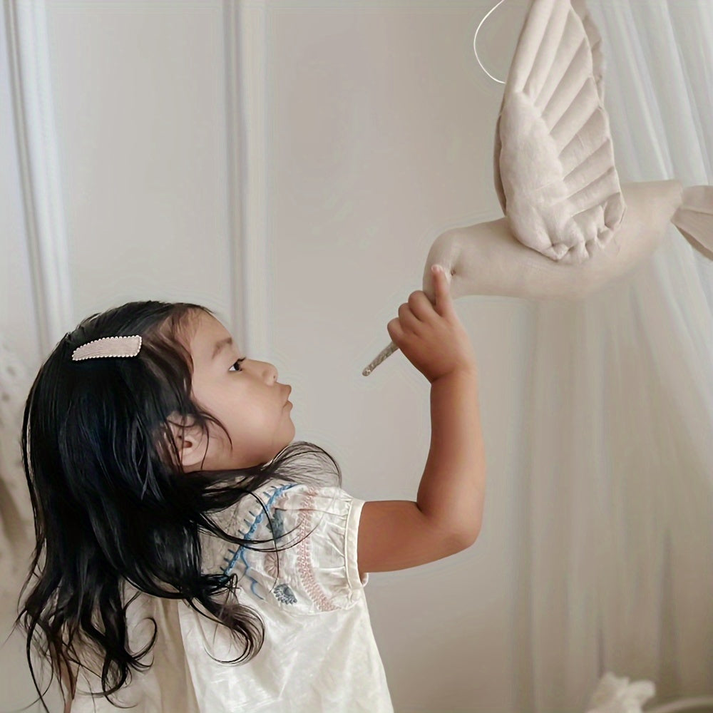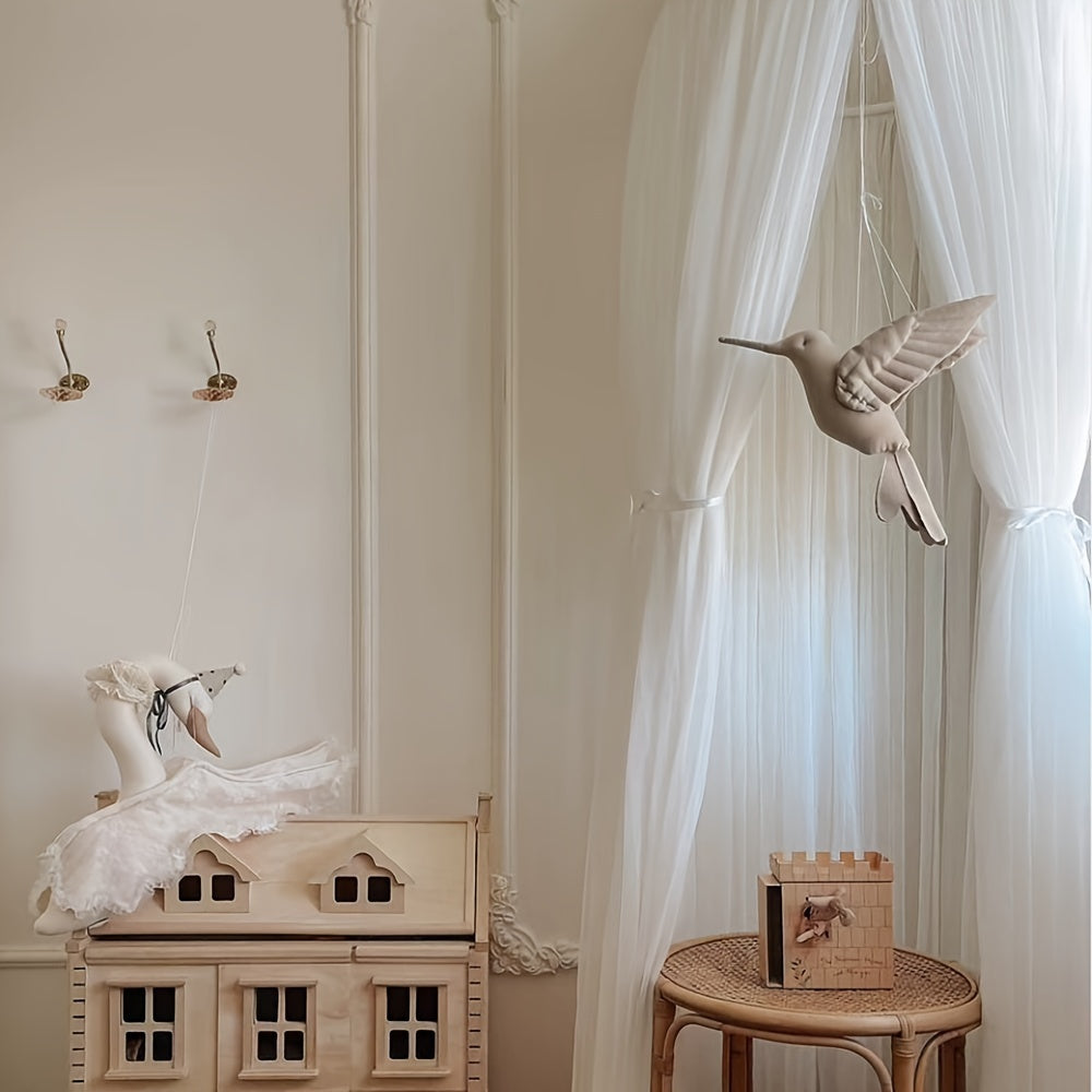 Nordik uslubidagi pendant, chiroyli lenin san'atidagi kolibri shaklida, bolalar xonasini bezatish uchun mukammal. Fotografiya suratlari uchun ajoyib va bolalar xonasi dekoratsiyasi uchun prop sifatida.